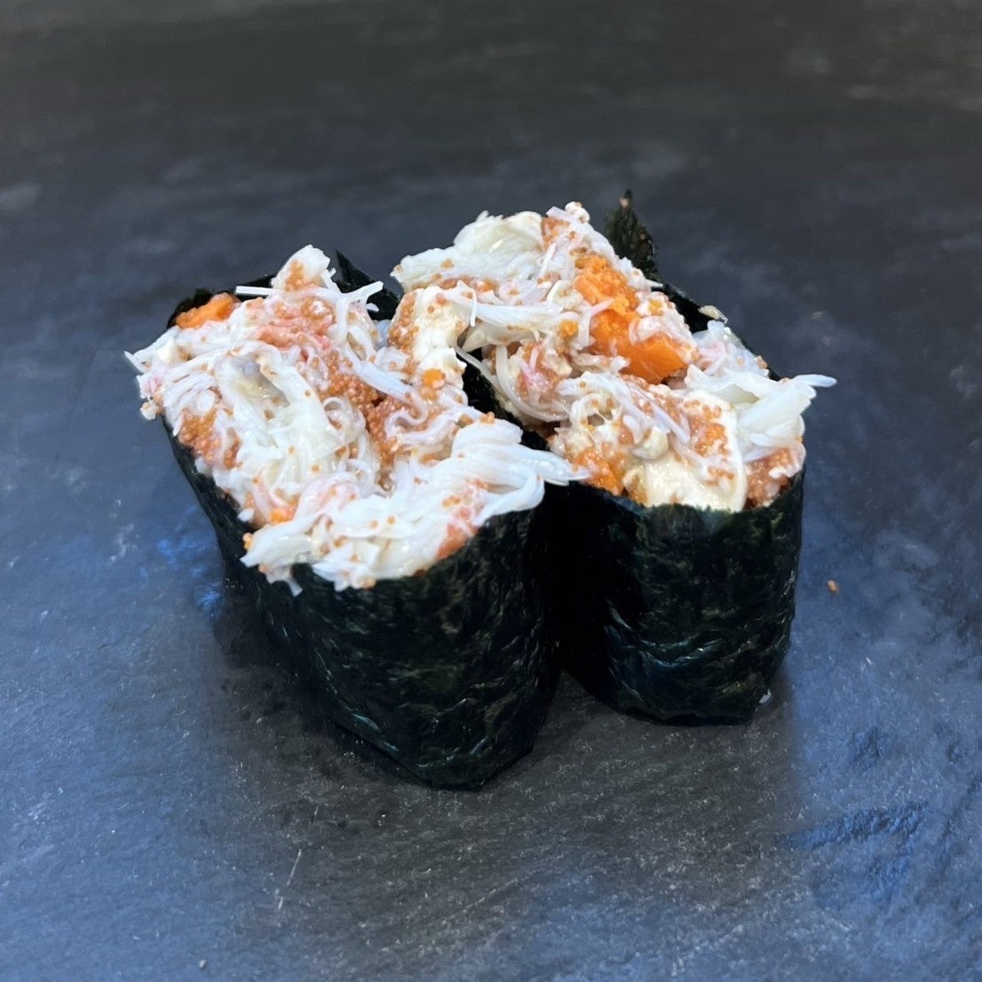 輝らりでは、丁寧に身を外し、甲羅に内子・外子・脚身を贅沢に盛り付けた「カニ面」と、旨みをそのまま味わえる「軍艦巻き」の2種類をご用意しています。