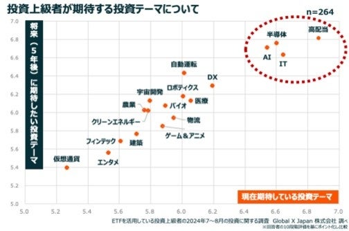 投資上級者の期待を集める投資テーマは「高配当」「半導体」「AI」「IT」他