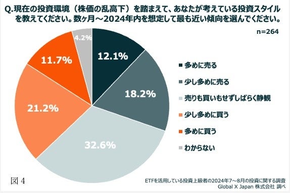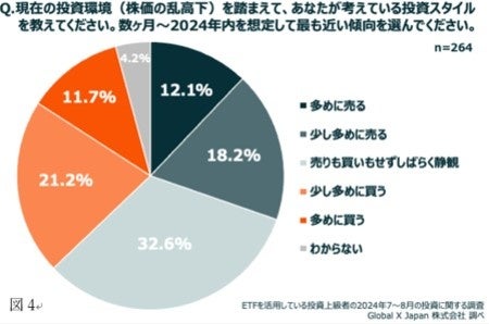またこの先数ヶ月の投資スタイルについて聞いたところ、「買う」「静観」「売る」が同程度の割合で分散している一方で、「わからない」とした人はわずか4.2%に留まりました。現在の不安定な投資環境下においても、投資スタンスを決めている方が多いことが分かりました。(図4)