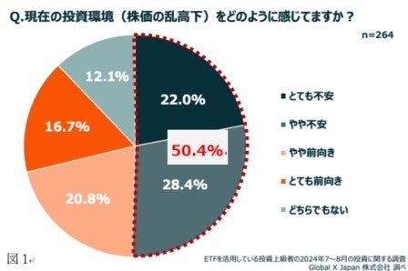 投資経験5年以上の投資上級者でも、約半数が歴史的な株価乱高下を記録した2024年7〜8月の投資環境について、不安を感じていたことが分かりました。(図1)