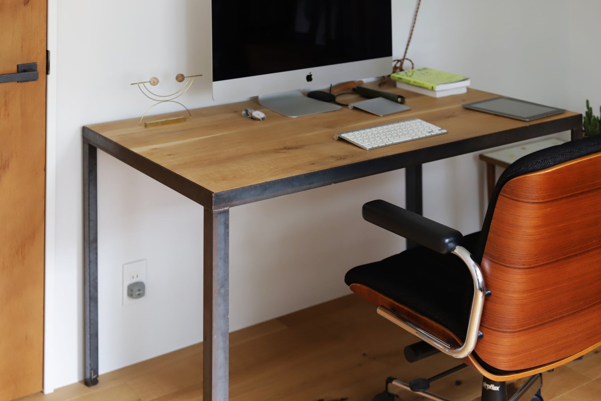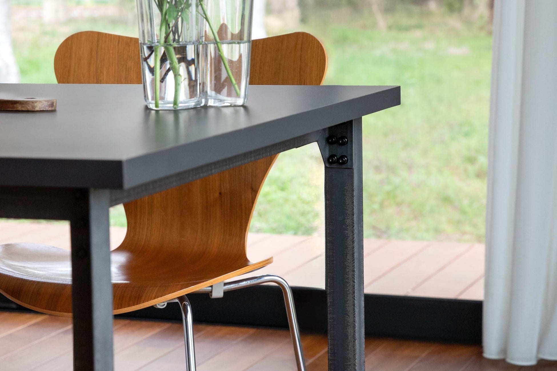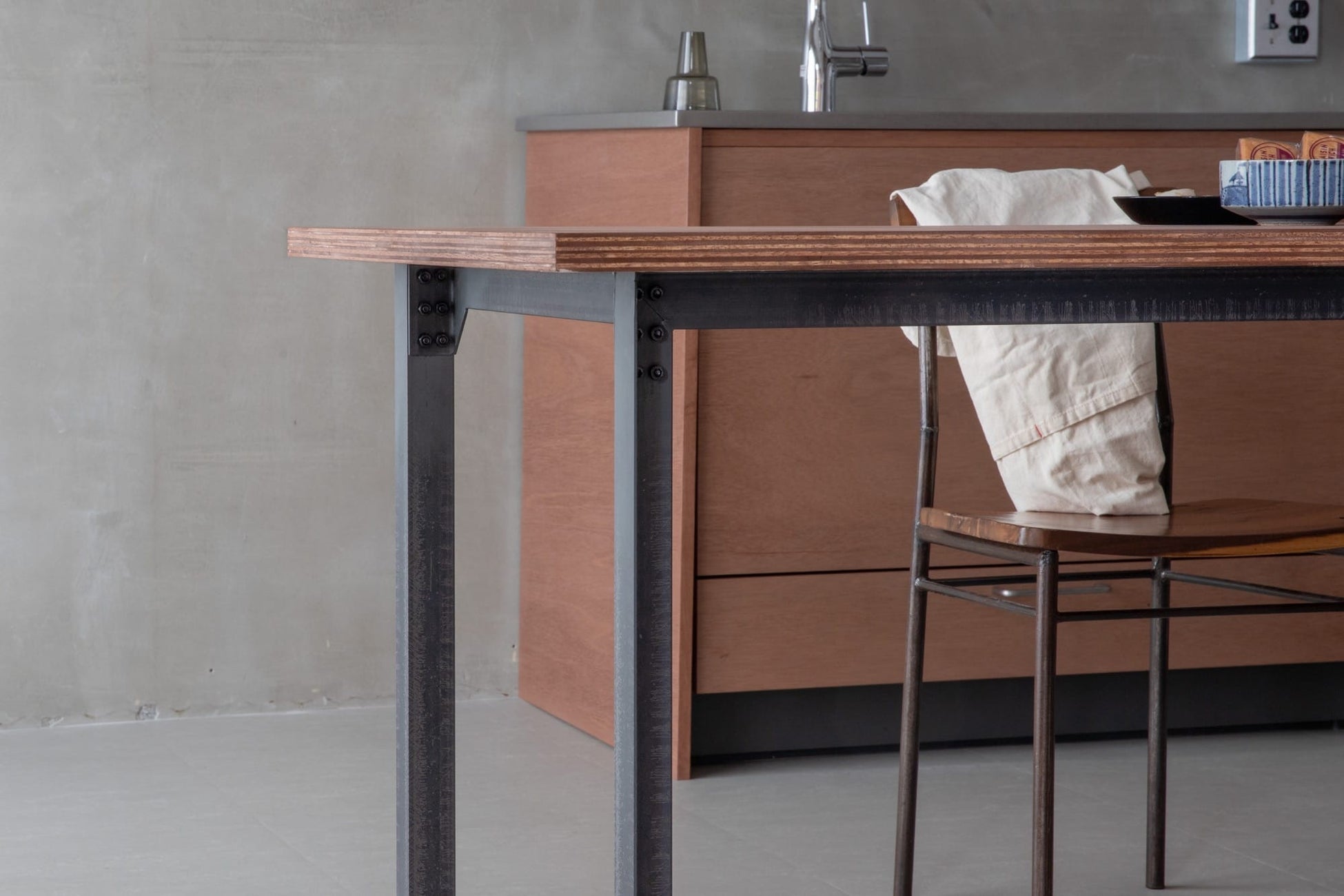 木と鉄のテーブル脚