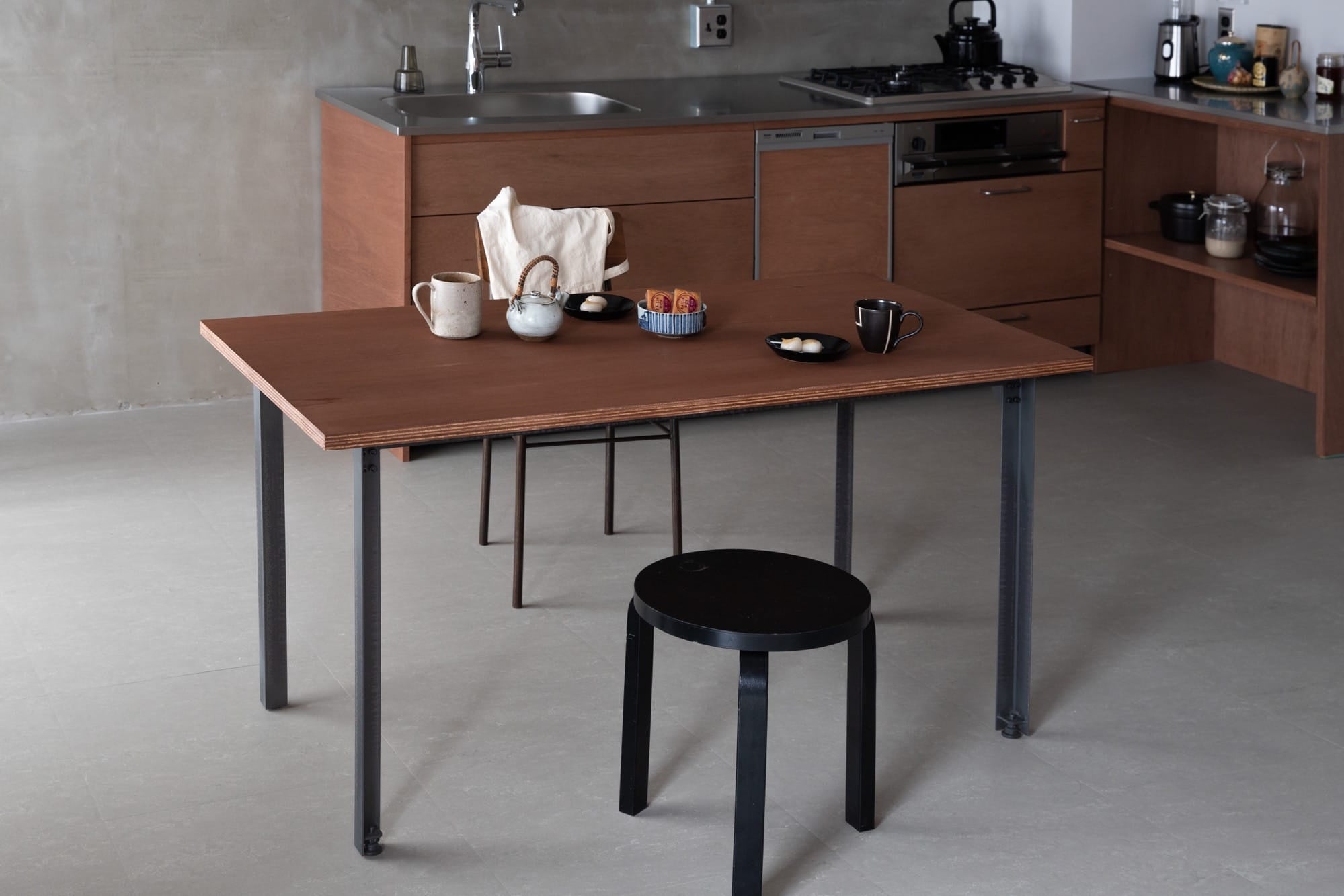 黒皮鉄の素材感と空間に馴染む佇まいを両立させたテーブル脚は、天板と自由に組み合わせることで、空間に合わせて“仕立てる”ようなテーブルづくりを可能にします。