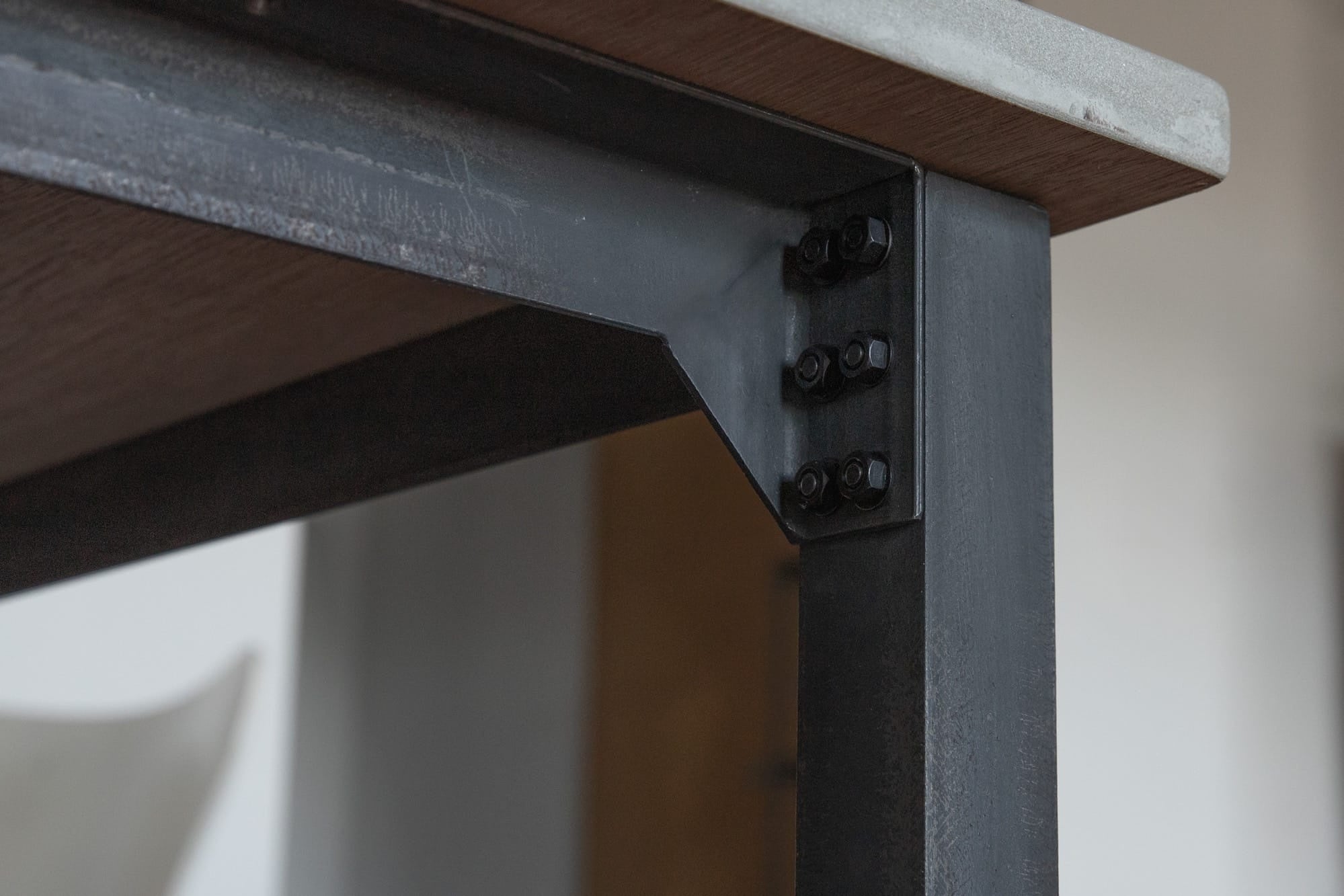 黒皮鉄のテーブル脚と同じく、Lアングル鋼材でできたテーブル脚。鉄らしい無骨なスチールの質感が楽しめます。幅・奥行き・高さのサイズオーダーが可能なので、さまざまな使い方ができます。