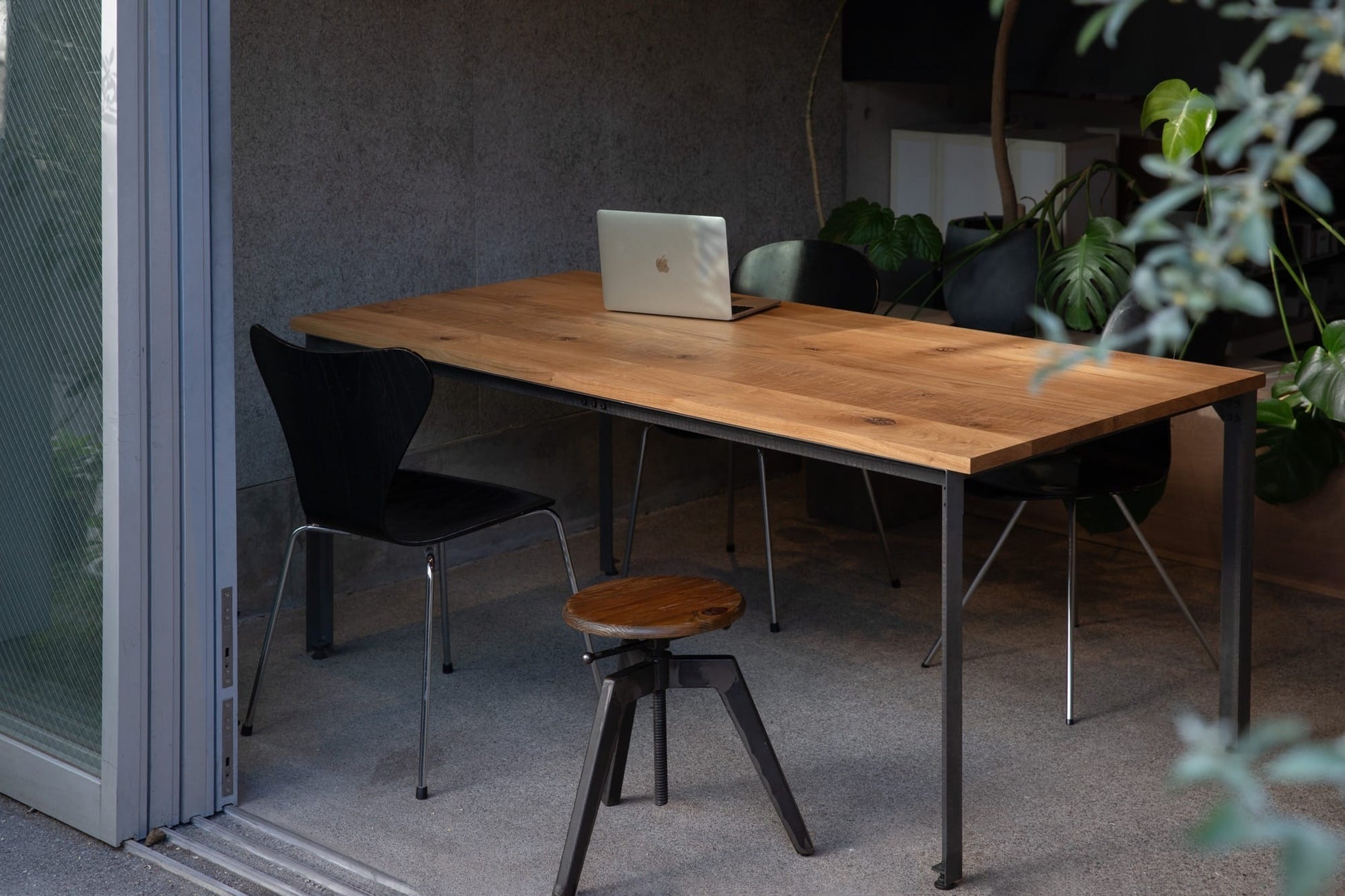 「黒皮鉄のテーブル脚」は、鉄の無骨さだけでなく、空間への馴染みやすさも重視し、形や表情にこだわりました。