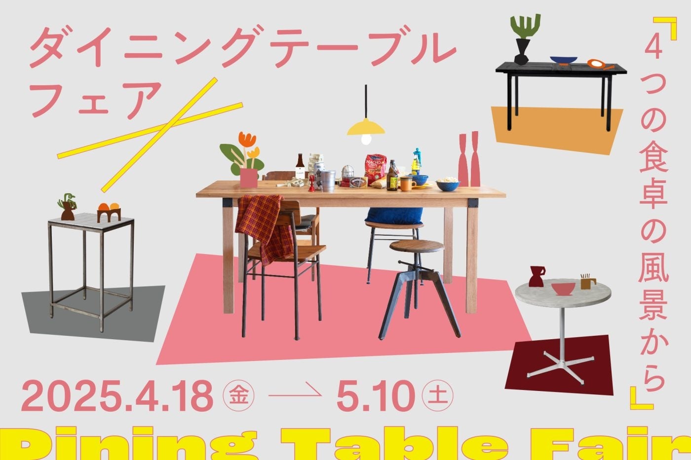 2025年4月18日(金)〜5月10日(土)、東京目白ショールームにて「ダイニングテーブルフェア〜4つの食卓の風景から」を開催。ダイニングテーブルを、椅子や照明だけでなく家づくりの素材と一緒に検討できる企画です。