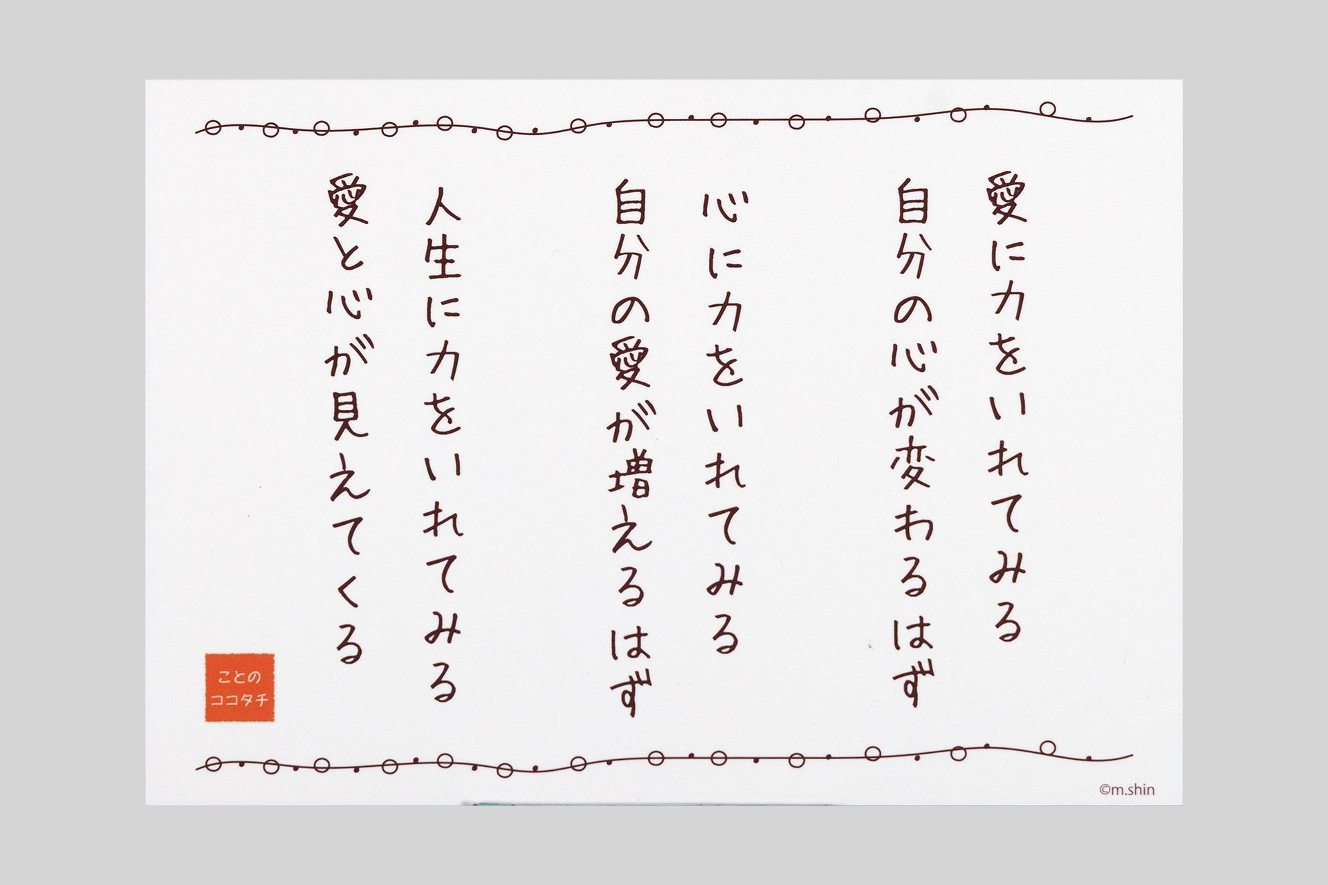 日常の中で目に見えるところに置いたり飾ったり、持ち歩くことで、何度も読み返し、悩んでいたり、落ち込んでいた自分をケアしていきます。