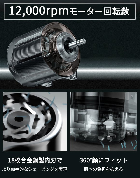 12,000rpm高速静音モーター搭載、18枚刃で極上の剃り心地を