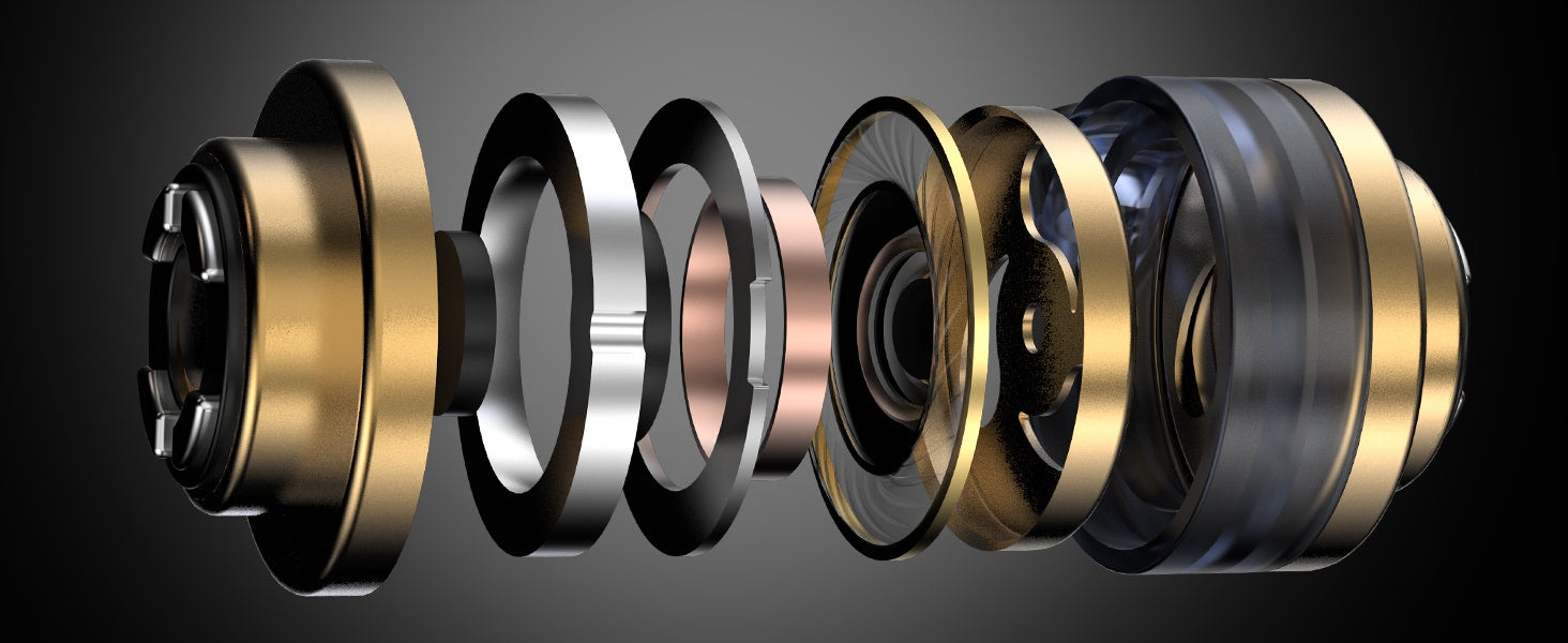 内部の磁気コアと、外部磁気回路の設計により、大きな磁束密度を確保し、真鍮製のキャビティにより磁気漏れを大幅に低減し、同時に力強いサウンドを実現しています。