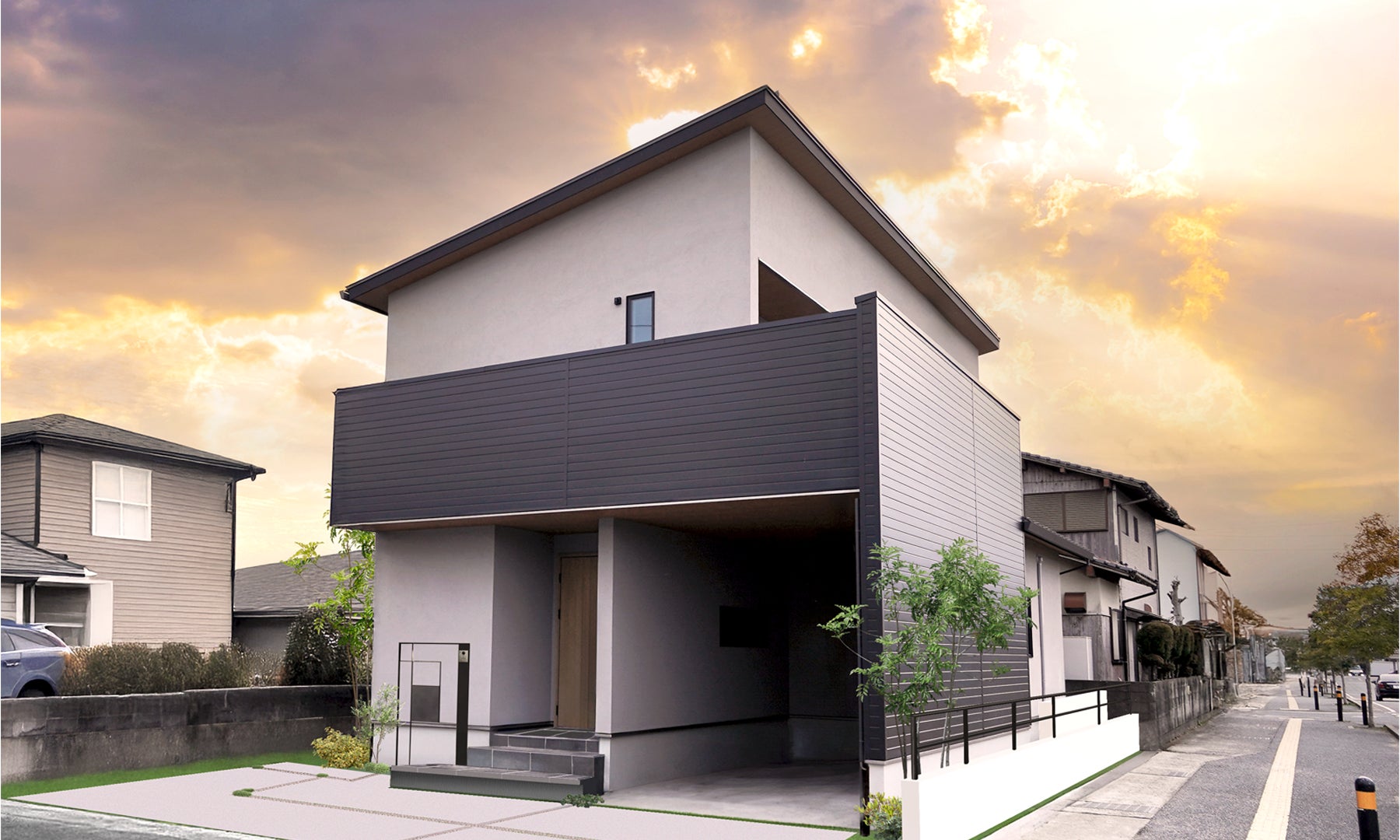 創業27年、外断熱の先駆者が挑むが挑む「性能×美」の融合。全棟C値実測の超高性能スペックに、2階リビング・屋内ガレージを備えた暮らしを提案。停電時の生活を支える「スマートエルラインライト」を装備。