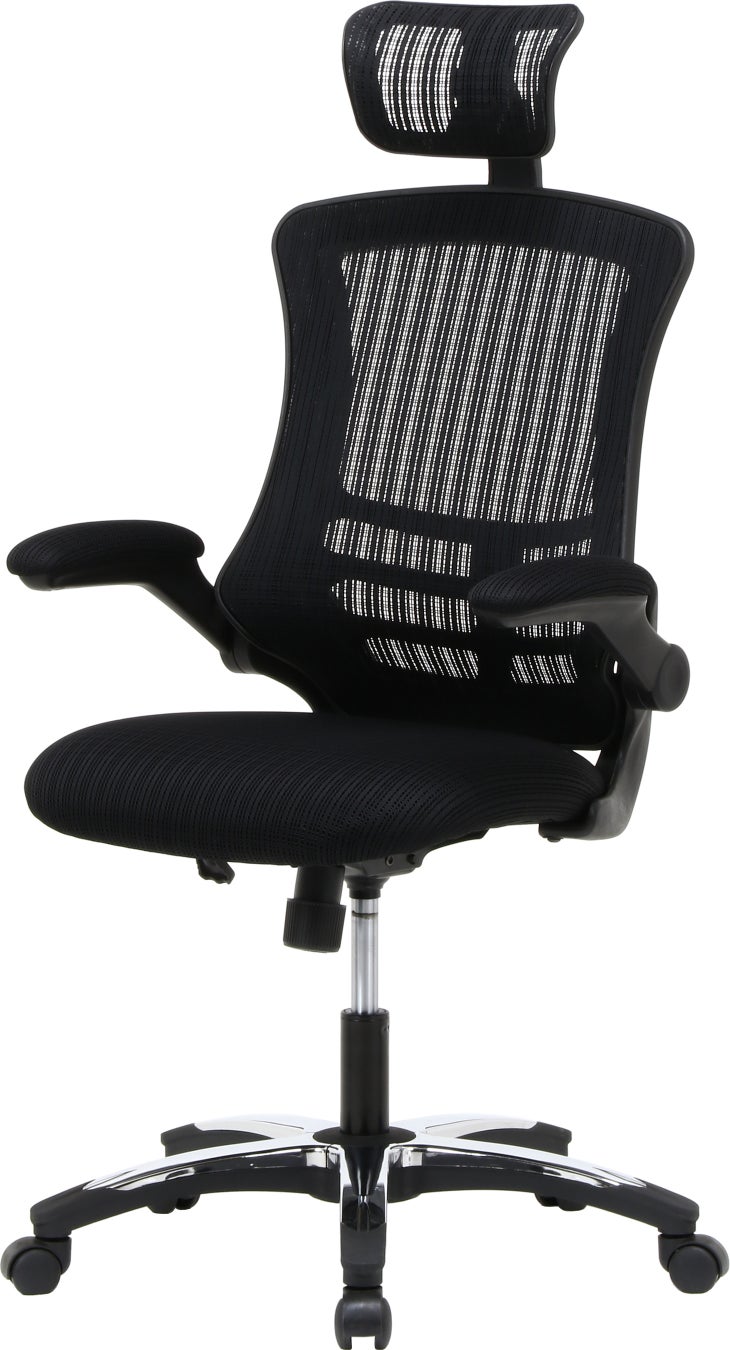 ハイバックの背もたれは全面メッシュで通気性もよく、首までしっかり支えてくれます。またカーブを描いているので自然にS字の形になり、背筋が伸びることで正しい姿勢へ促します。他にもリクライニングや跳ね上げ式アームなどの機能面も充実。