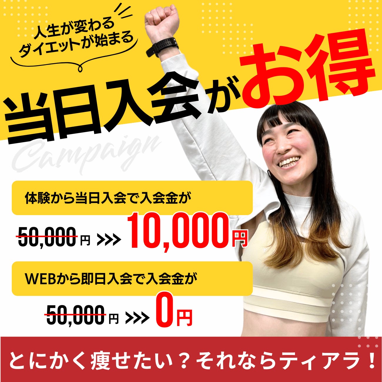 ダイエット特化型の女性専用パーソナルジム「ティアラ」では、女性の悩みに合わせた専用プログラムの提供とともに、期間限定の入会キャンペーンを開始いたしました。