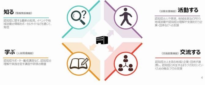 認知症の人と共生するまちづくりに資する地域や企業の取組・情報を集約し、情報発信や地域、企業の活動や交流支援を行う相談窓口を開設します。