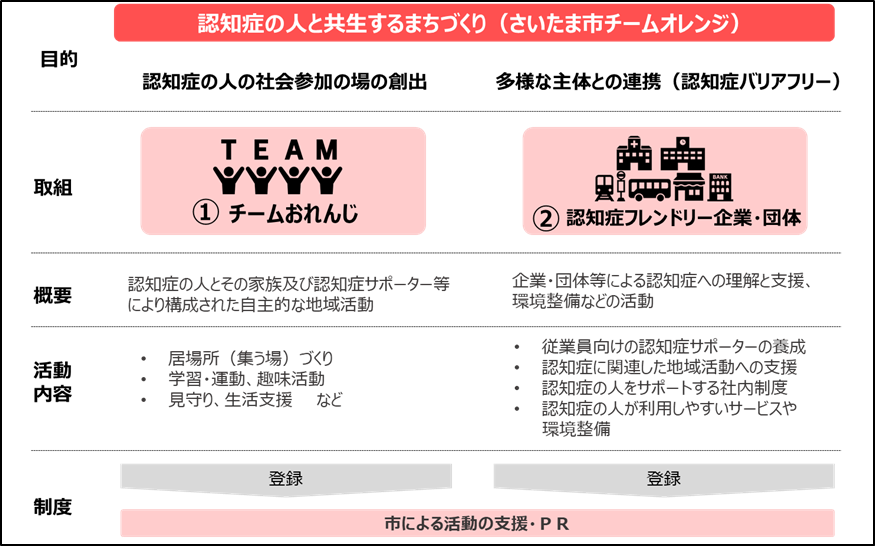 ※さいたま市チームオレンジは「①チームおれんじ」「②認知症フレンドリー企業・団体」による2つの取組の総称です。
