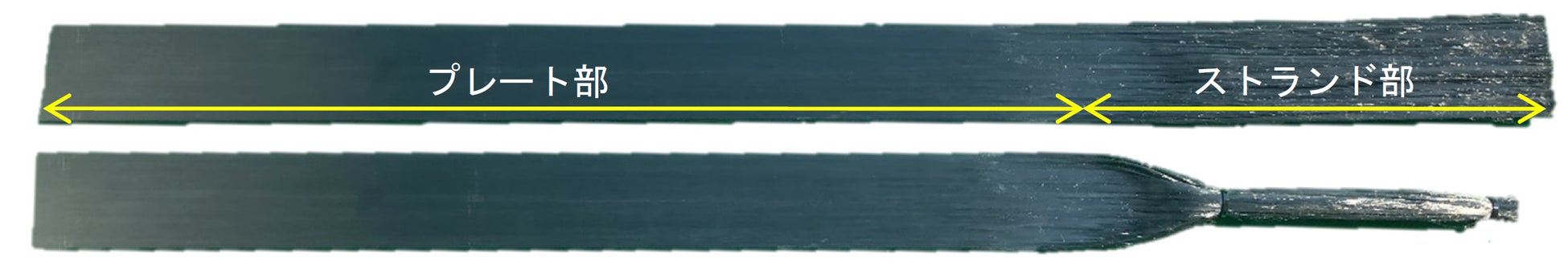 e-アンカーは、プレートとストランドが一体となったCFRP成形品であり、形状は一端がプレート状、もう一端がストランド状となっています(図1)。