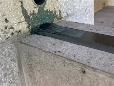 CFRPプレートを用いた補強では、その補強効果を発揮するために適切な定着長さを確保する必要があります。しかし、直交壁などの障害物により適切な定着長さを確保できない事例も多く、そのような場合は鋼板やボルトを用いる機械式定着により端部を固定しています。しかし、機械式定着では、定着ボルトが施工後の仕上げに干渉するため、特に床スラブの補強において施工後の使用性や居住性を悪化させてしまうことが問題でした。