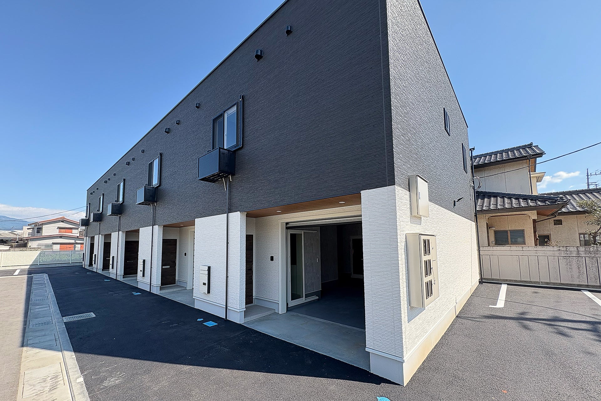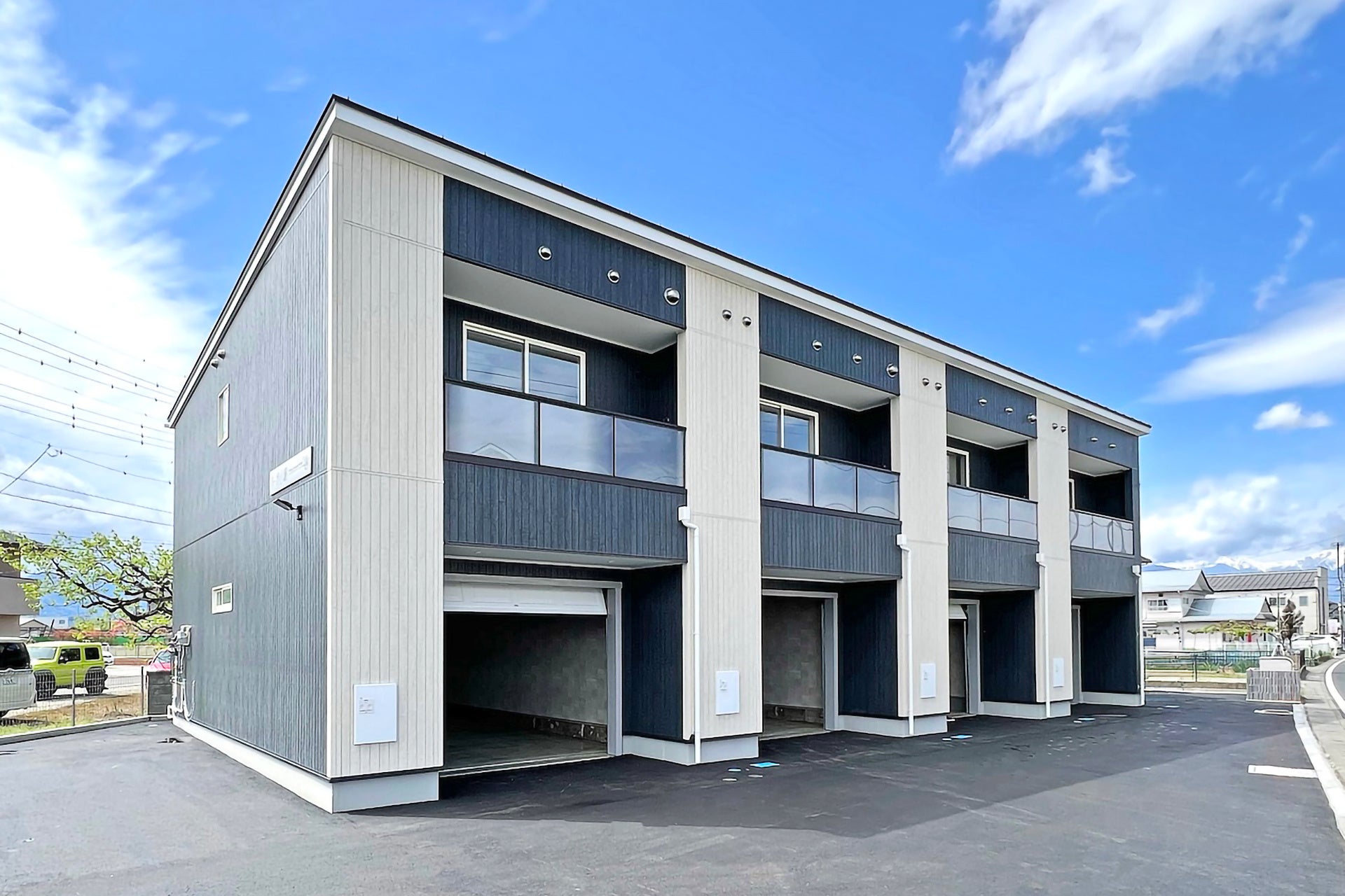 木製キット小屋・ガレージ販売の国内最大手「グリーンベル」が手がける、ガレージ付き賃貸アパート「リーガ七沢」の完成内覧会を山梨県甲府市にて8/23, 24で開催!