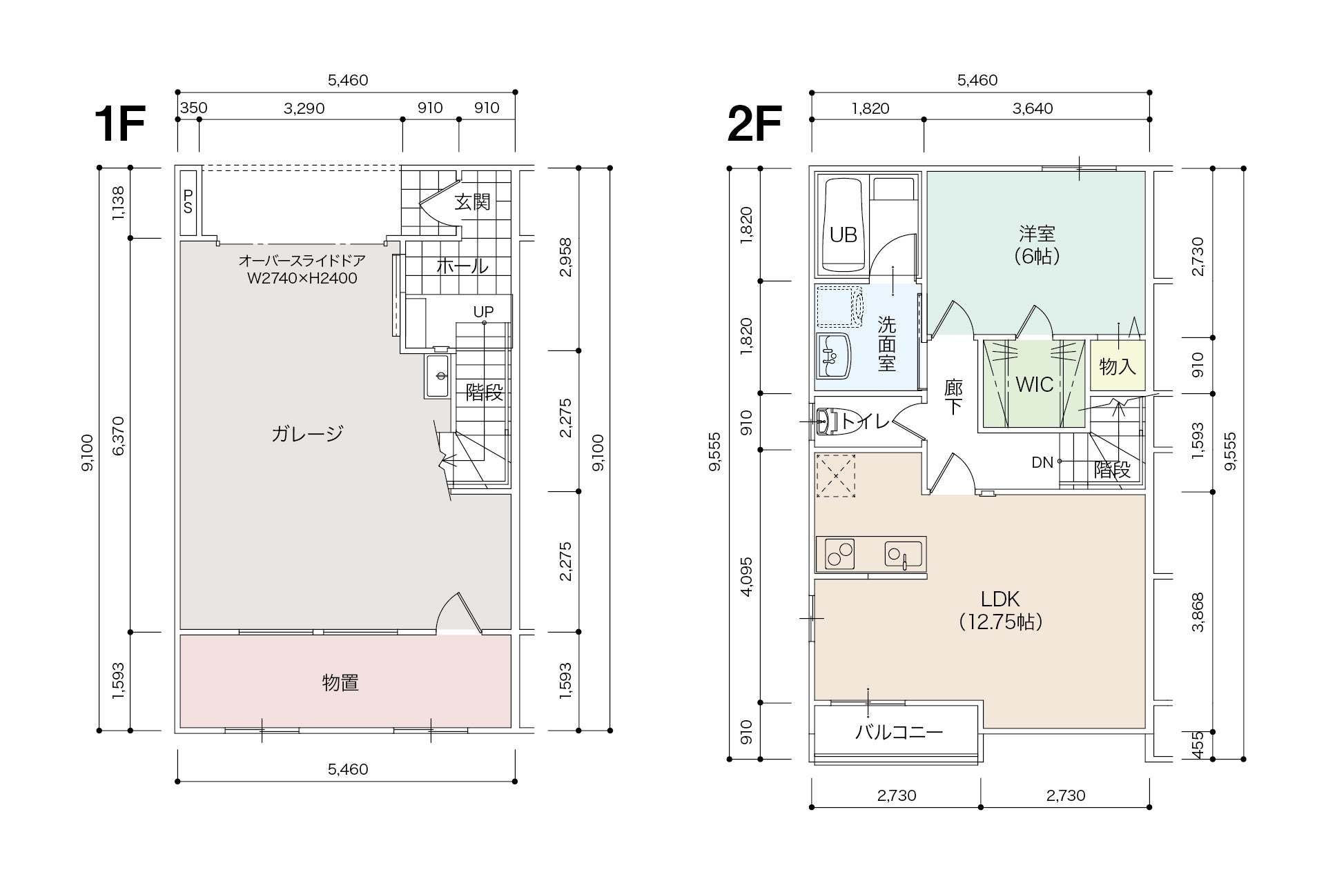 2階部分は、居心地の良さと実用性を兼ね備えた1LDK。12.75帖のLDKは南向きのバルコニーに面しており、自然光が差し込む開放的な空間を実現しています。