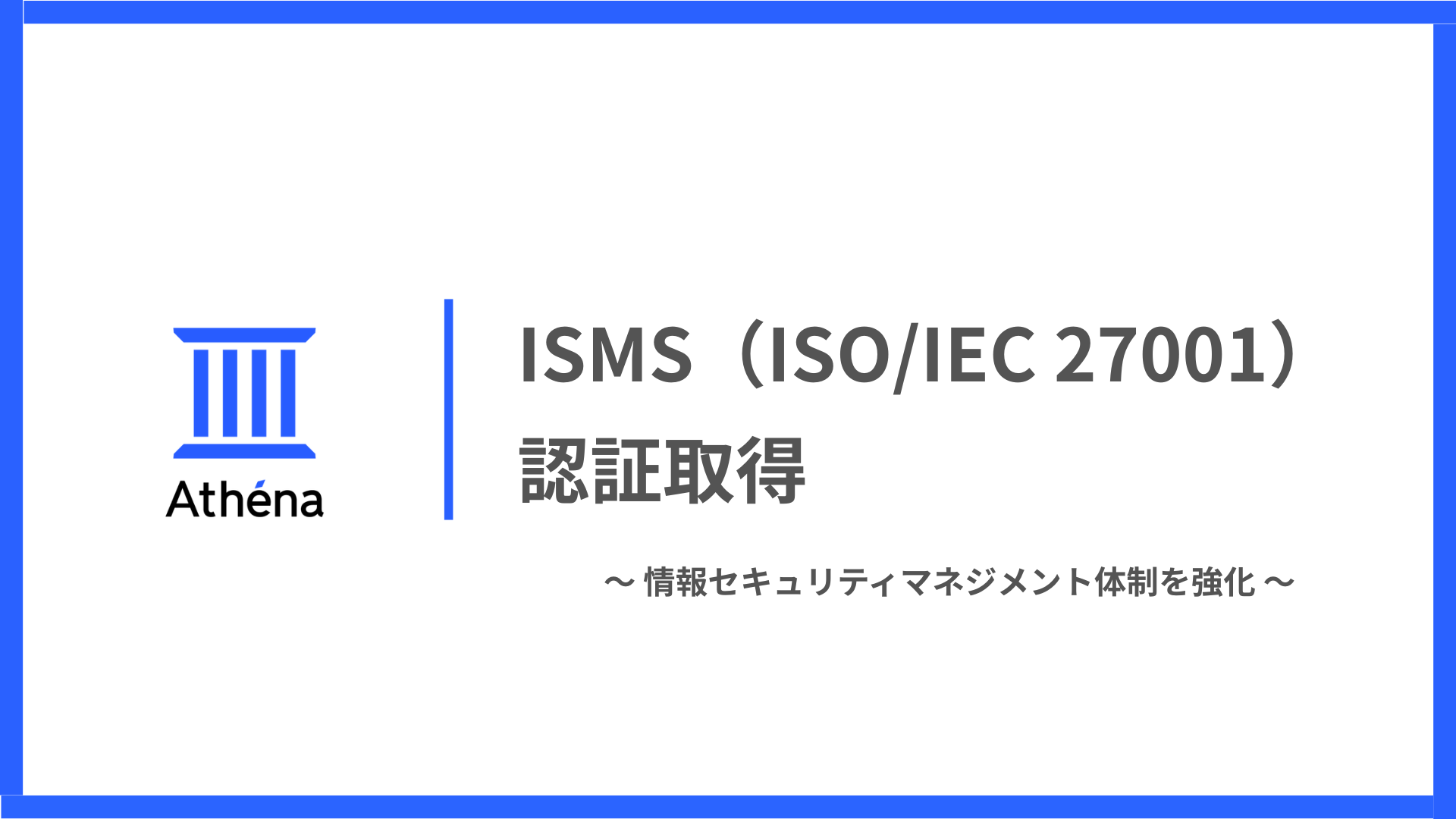今回のISMS認証取得は、Athena Platformの提供において情報セキュリティを事業の基盤と位置づけ、その運用体制と管理プロセスを国際規格に則ってさらに強化したことを示します。