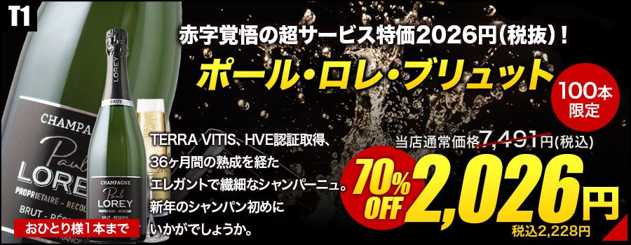 【ワインショップソムリエ 年越し・新春初売りSALE開催 12/26〜1/13】元日深夜0時、シャンパンが2,026円に