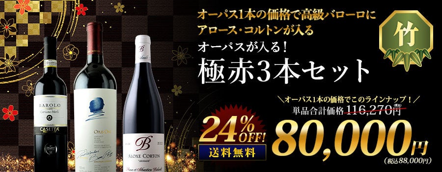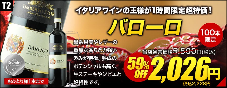 新年を迎えるにふさわしい「シャンパン」や“ワインの王様”と称される「バローロ」など、赤白泡の逸品を各100本数量限定にて、2,026円(税抜)にて販売いたします。