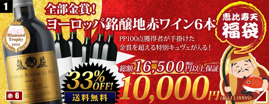 全部金賞受賞の銘醸地周遊福袋や、シャブリ1級入り福袋、シュヴァル・デ・アンデスを含む世界の銘酒福袋などワインラヴァーはもちろん、ワイン初心者にも選びやすく、ギフトやパーティー用途にも適した内容となっております。