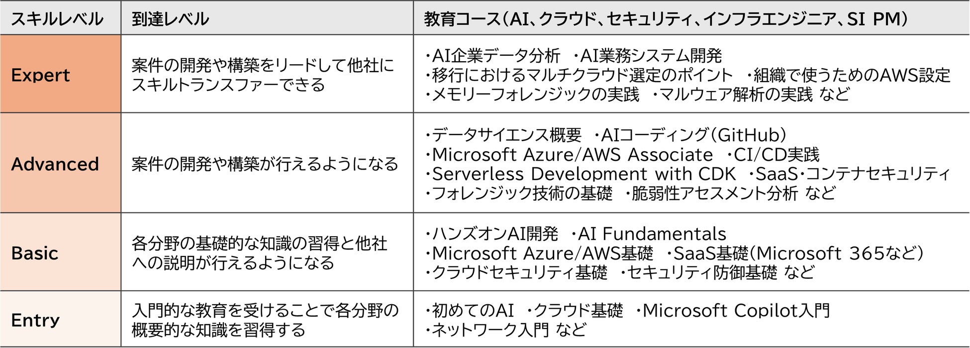 5つの教育コース:AI、クラウド、セキュリティ、インフラエンジニア、SI PM
