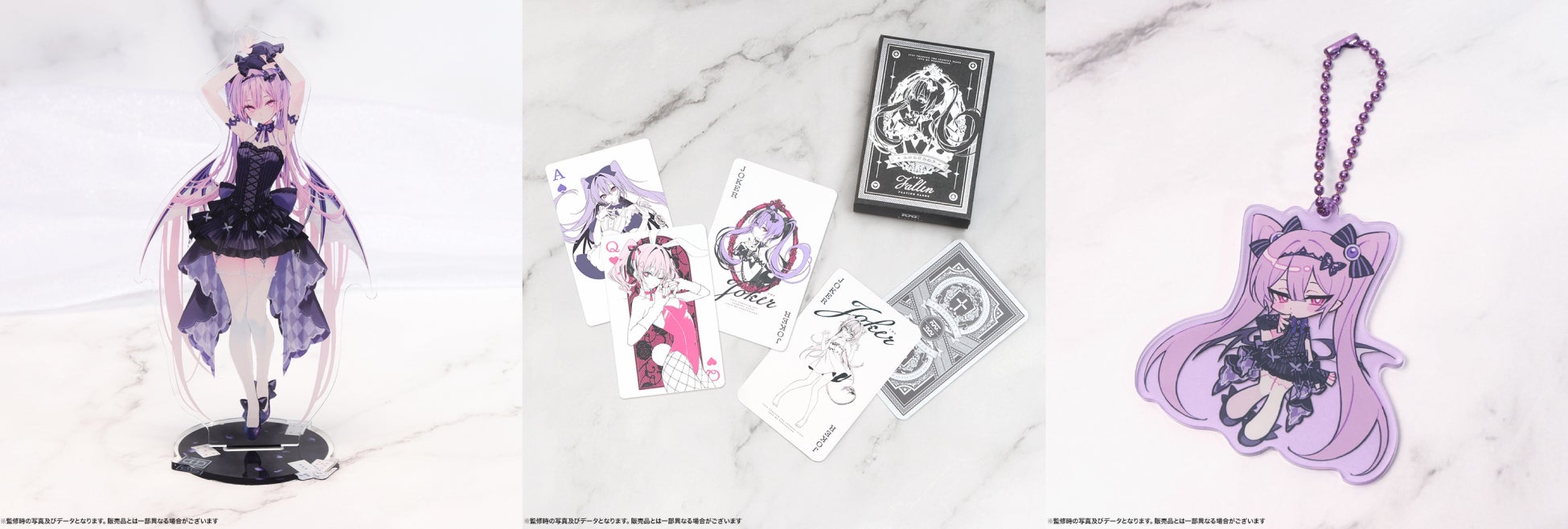 1/1スケール イヴ(JOKER Ver.)のアクリルスタンドやオリジナルトランプ、アクリルキーホルダーを販売します。会場で展示されている1/1スケール イヴ(JOKER Ver.)の世界観をご自宅でもお楽しみください。