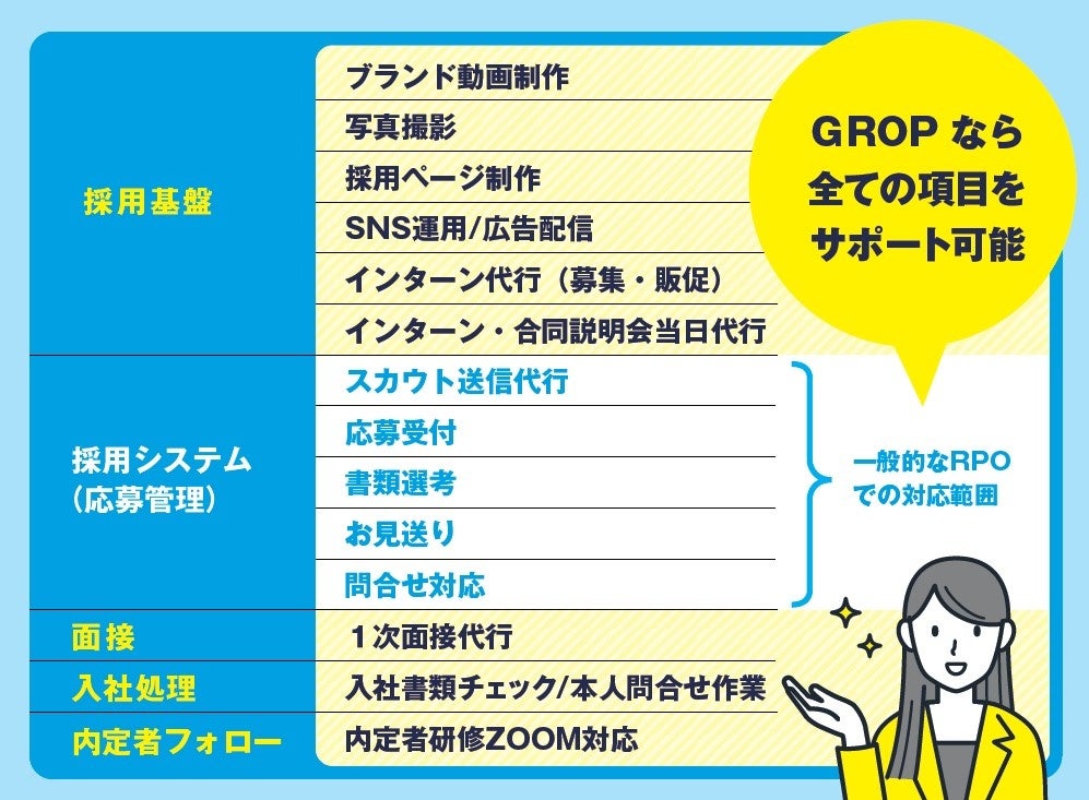 グロップ、「人事アウトソーシング」で正社員/アルバイト採用プロセスに幅広く対応