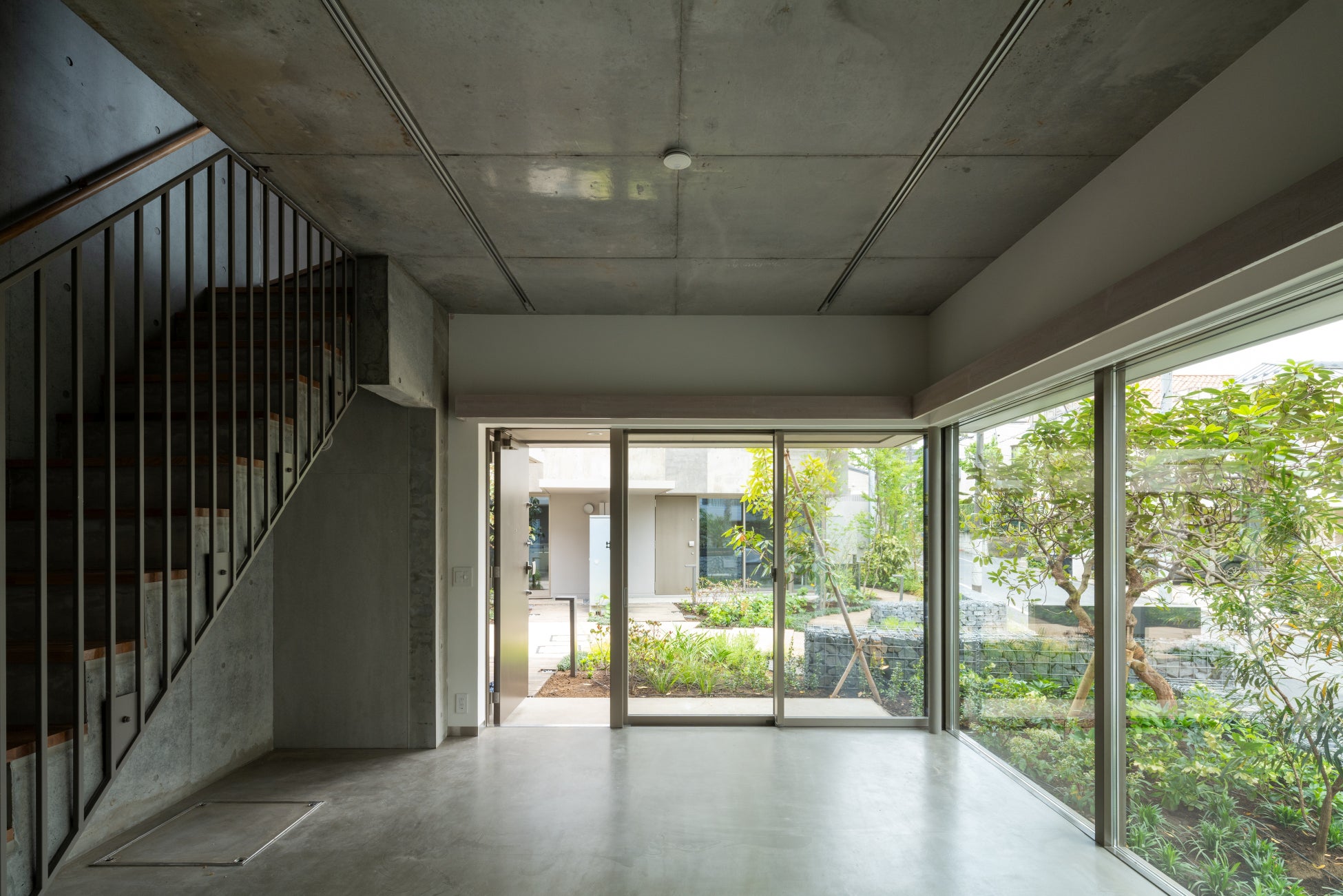 都市の中にありながら、人のつながりを丁寧に育む住環境を実現した集合住宅である。周辺の戸建て住宅街のスケールや緑豊かな雰囲気を継承しつつ、23戸の長屋形式を採用し、敷地内に東西へ抜ける小径を設けることで、住人同士の交流を促す空間構成となっている。建物は1階部分を奥まらせることで、通りとの距離感を生み出し、安心感とプライバシーを両立させている。小径には地被植物や中高木を配し、通行人と住戸の間に柔らかな緩衝帯を設けている。さらに、玄関の位置やコンクリート土間からフローリングへの素材の切り替えなど細部に至るまで配慮が行き届いており、室内と外部が自然につながる設計となっている。また、緑と馴染み神経質な景観とならないムラのあるコンクリートの表情は、試行錯誤の末、風格ももたらしている。共用部には井戸やベンチを備えた庇空間を設け、住人が気軽に集える場を創出している。屋上には全住戸にプライベートな外部空間が確保され、都市にありながら開放的な暮らしを楽しめる。このプロジェクトは、集合住宅でありながら一邸一邸に個性と独立性を持たせ、地域に根ざした豊かな住まいのあり方を提示している点で、高く評価されるべき事例である。