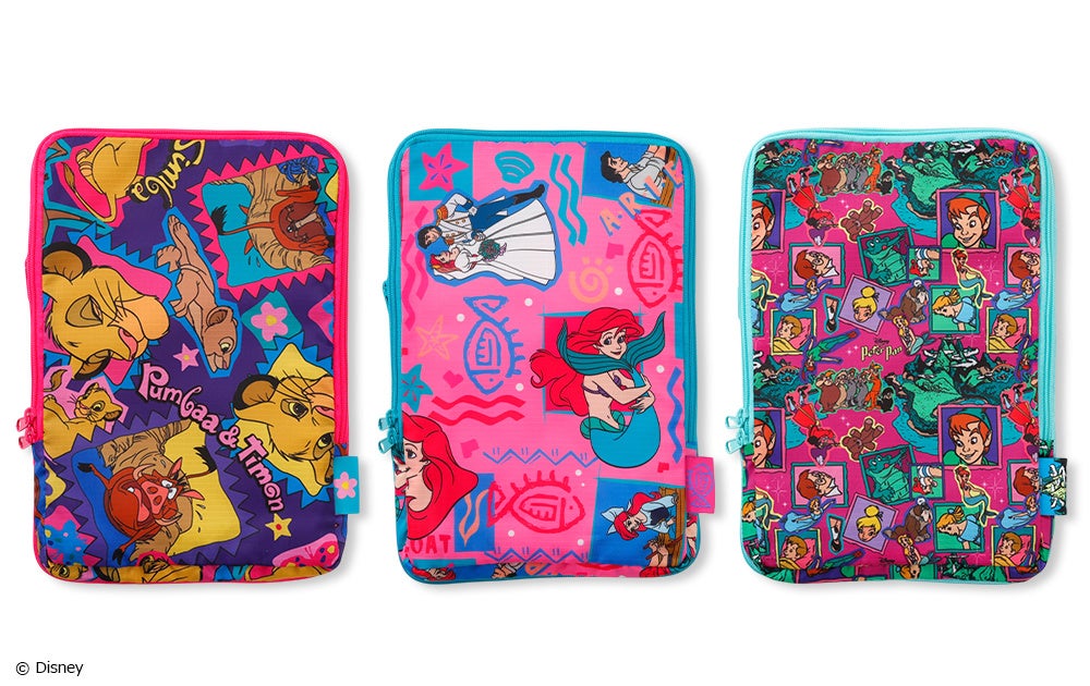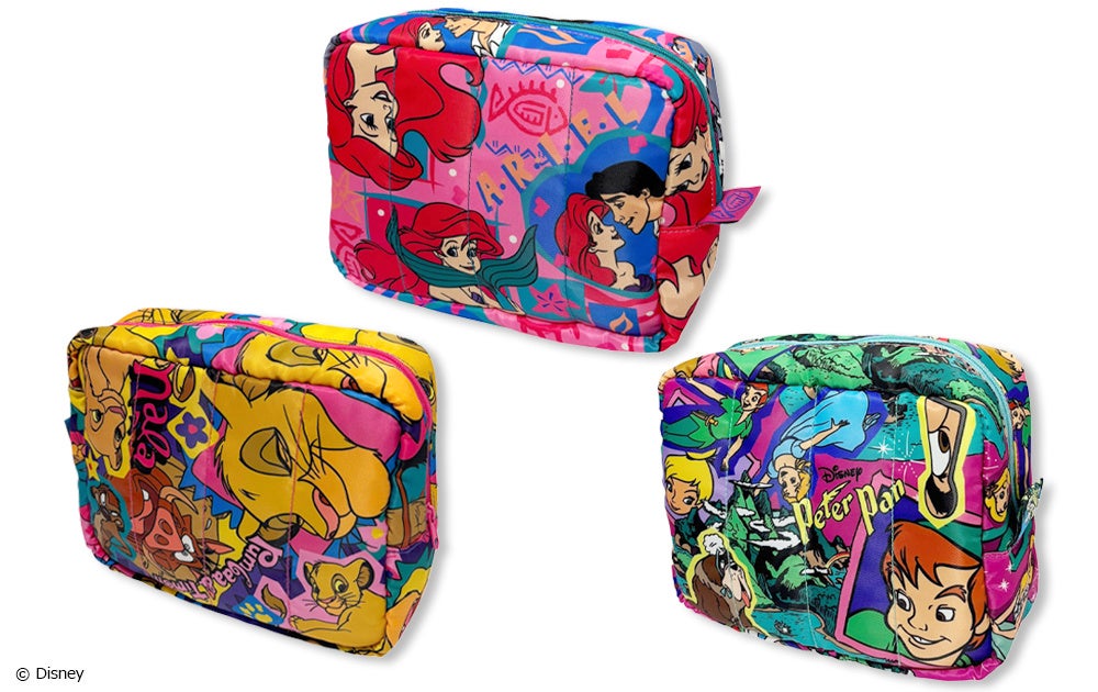 クラシックなディズニーキャラクターたちを、カラフルでポップな総柄で表現し、日常使いしやすい毎日持ちたくなるアイテムに仕上げています。