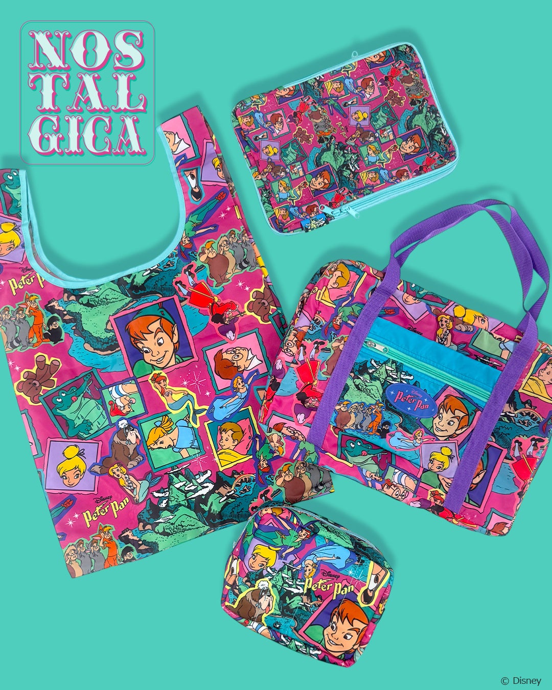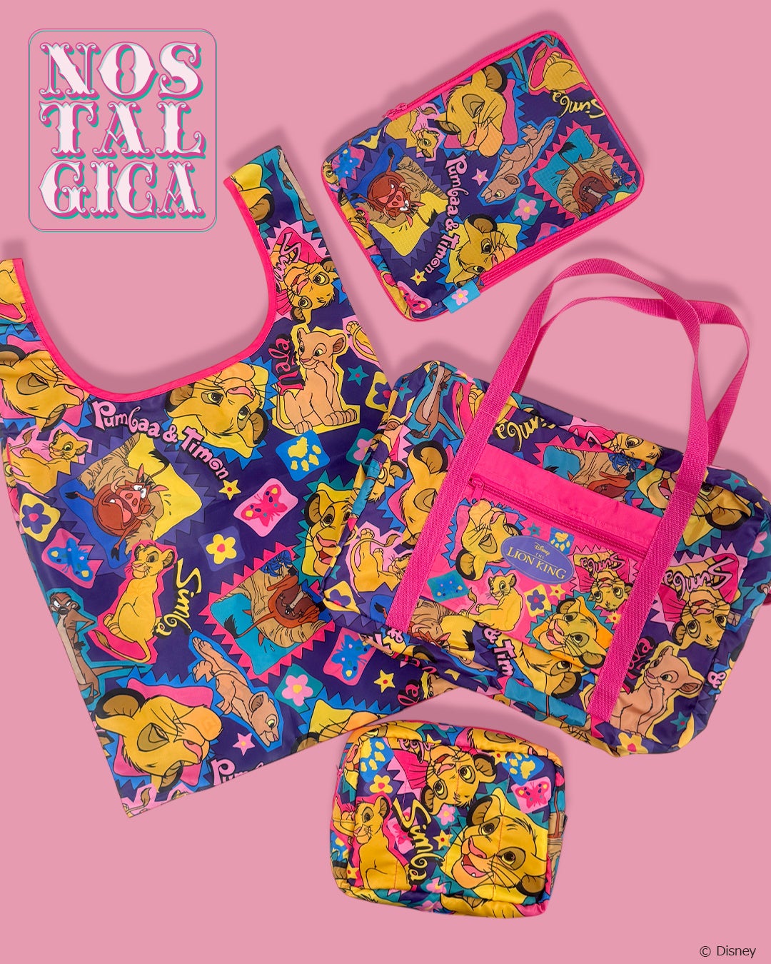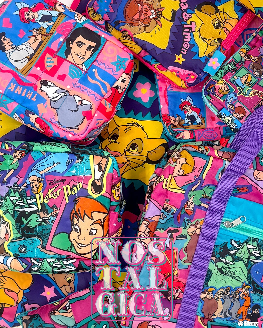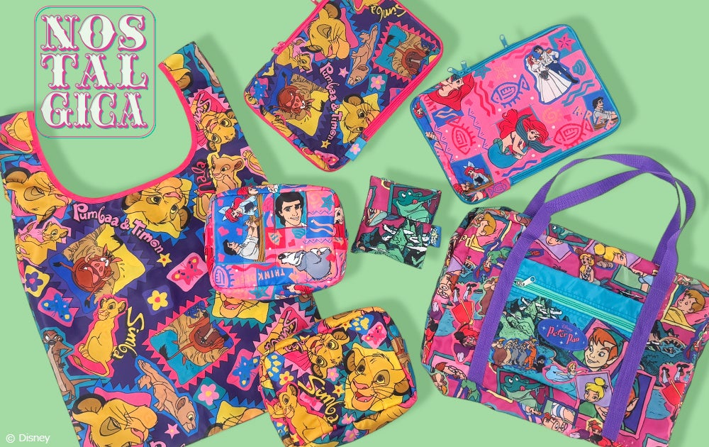 【4/7発売】ディズニーキャラクターをカラフルな総柄で楽しむ<ノスタルジカ>シリーズより、春のレジャーにぴったりなバッグ&ポーチが登場