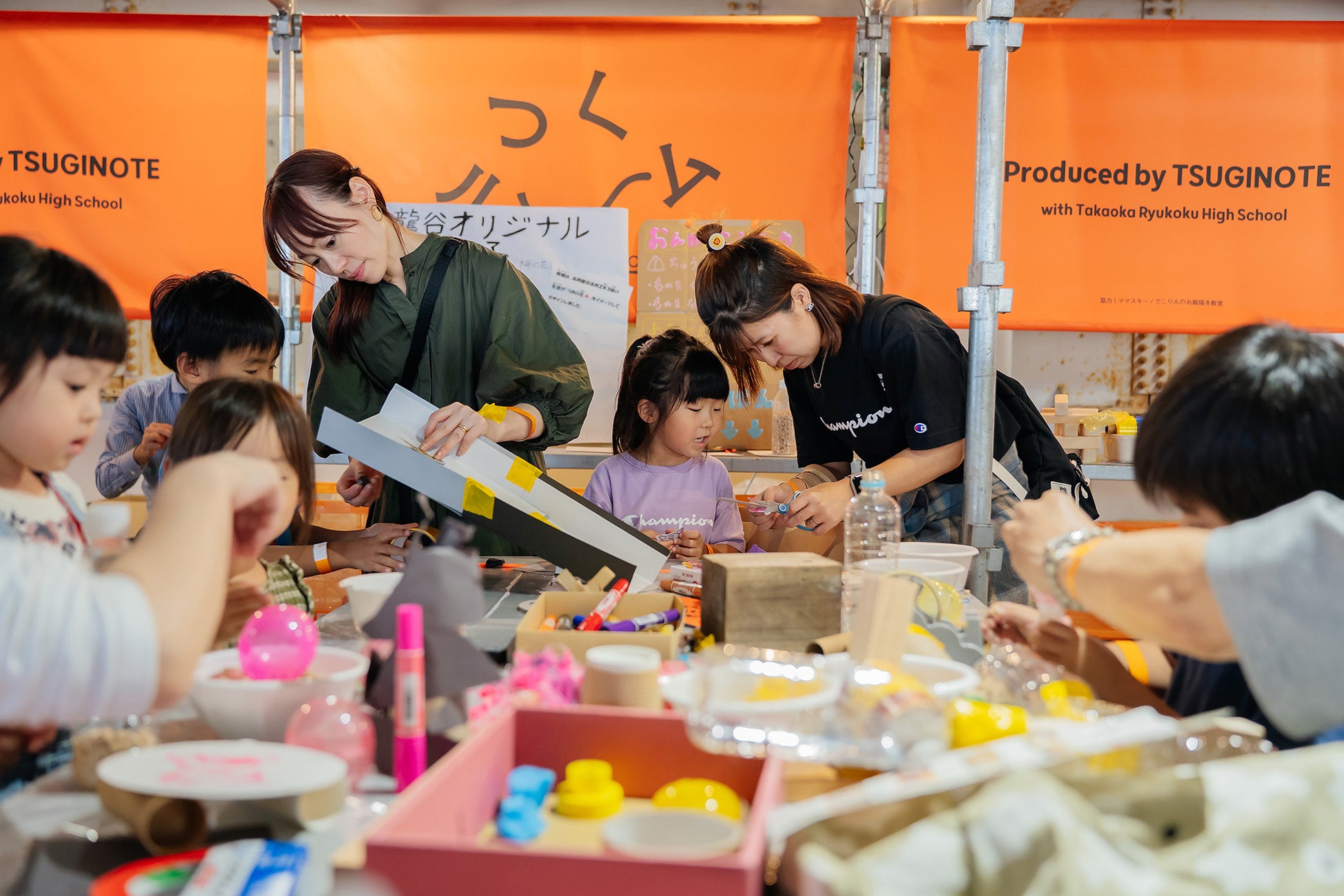 工場や家庭から出る廃材を使い、子どもが自由に創作できる工作し放題の体験スペースを高校生と共同企画。高校生ならではの視点で廃材を使ったミニゲームも考案し、イベント期間中、順番待ちができるほど子どもたちで大賑わいとなった企画。