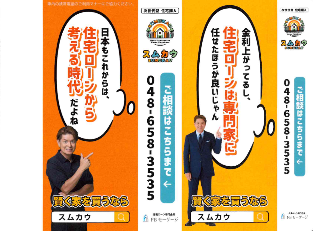 住宅ローン専門サービス事業を行う、FBモーゲージ株式会社(本社:埼玉県さいたま市、代表取締役:根石 高宏)は、次世代型住宅購入サービス「スムカウ」の吊手広告を、都営地下鉄各線にて2025年12月より順次掲示開始しております。