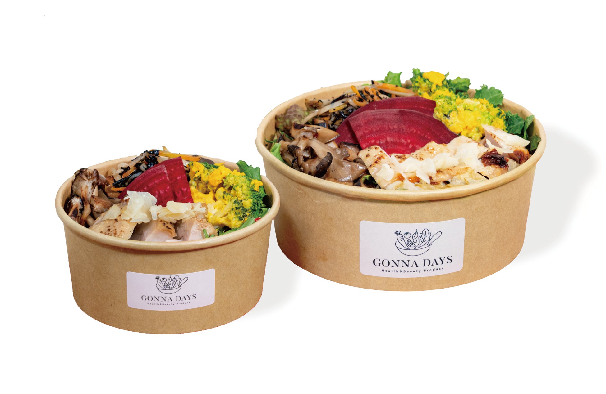 GONNA DAYSの「インナービューティーサラダ」は、 高栄養価で抗酸化作用のある彩り豊かな国産西洋野菜の他、1ボウルで栄養をしっかり摂取できるよう、野菜、魚、肉、穀物などの食材をそれぞれバランス良く配合しています。