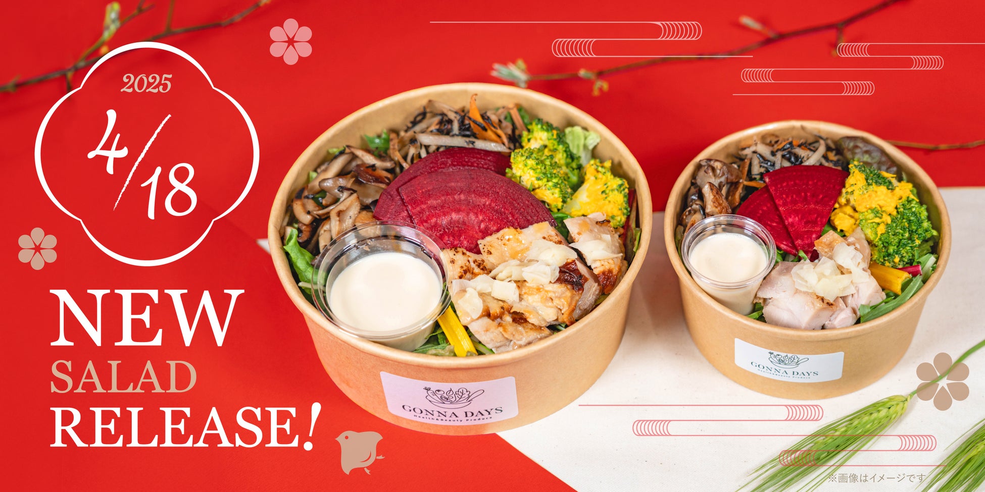 Mr.LAND株式会社(所在地:東京都千代田区、代表取締役社長:名塚 令)が運営するGONNA DAYS(ゴナデイズ、以下GONNA DAYS)は2025年4月18日(金)より、インナービューティーサラダシリーズの新商品「照り焼きチキンと3種デリの和風サラダ」を発売いたします。また、オリジナルドレッシングも、これまで提供していた定番の4種類の他、新たに5種がラインナップに加わり、お好みに合わせて自由にカスタマイズが可能に。 4種類のサラダと9種類のドレッシングを組み合わせて、最大36通りの味のバリエーションをお楽しみいただけます。