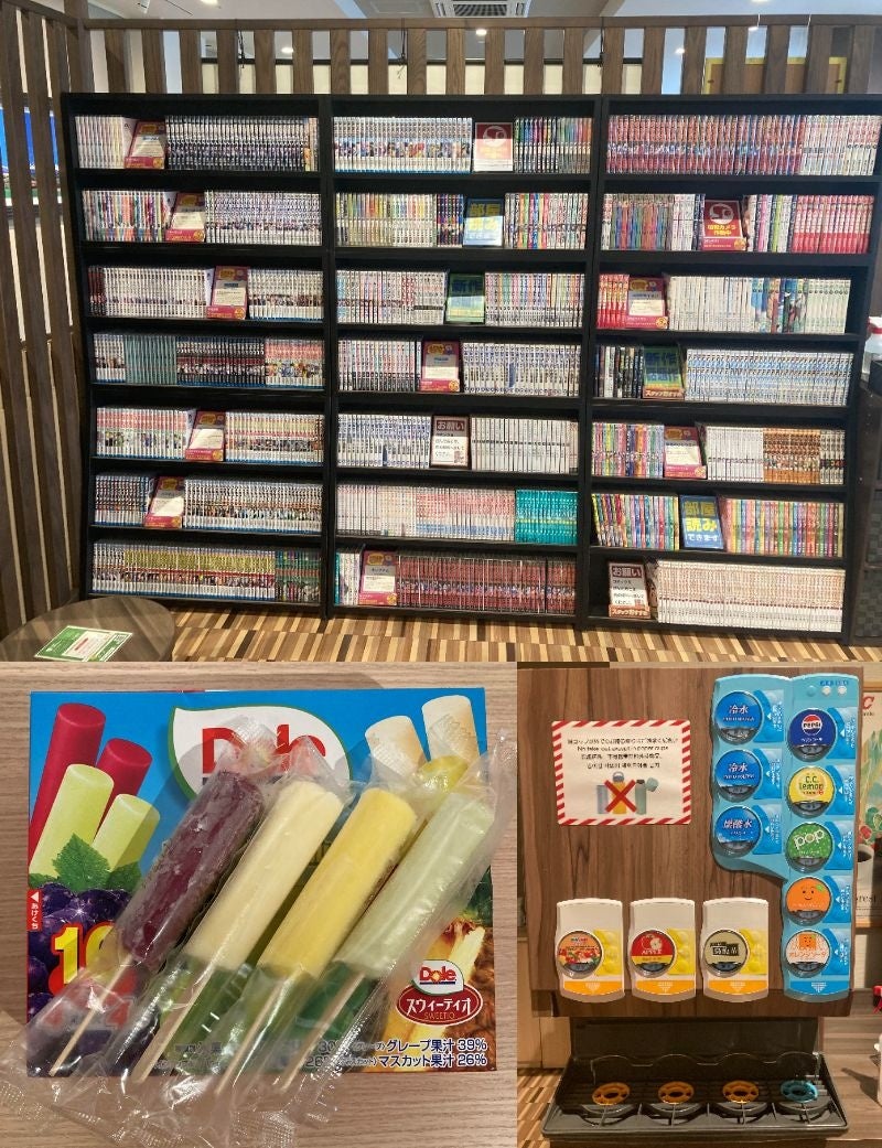 3Fラウンジ内には人気の作品を厳選した約1000冊のレンタルコミックコーナーとアイスバー・ドリンクバーがあり、大人からお子様まで大人気。