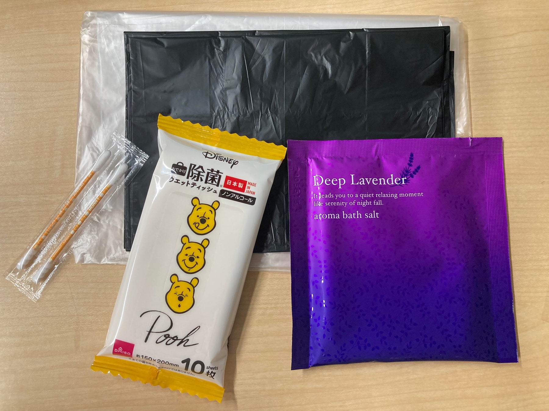 赤ちゃんをお連れのお客様に無料でお渡ししているオムツ用ごみ袋・お尻拭き・綿棒・入浴剤のセットは子供を育てた経験のあるスタッフからの発案で始めたサービスです。あると嬉しい備品から、大浴場にまだ入ることのできない赤ちゃんを連れたお客様にお部屋で寛いでほしいという願いを込め、入浴剤をお渡ししております♪