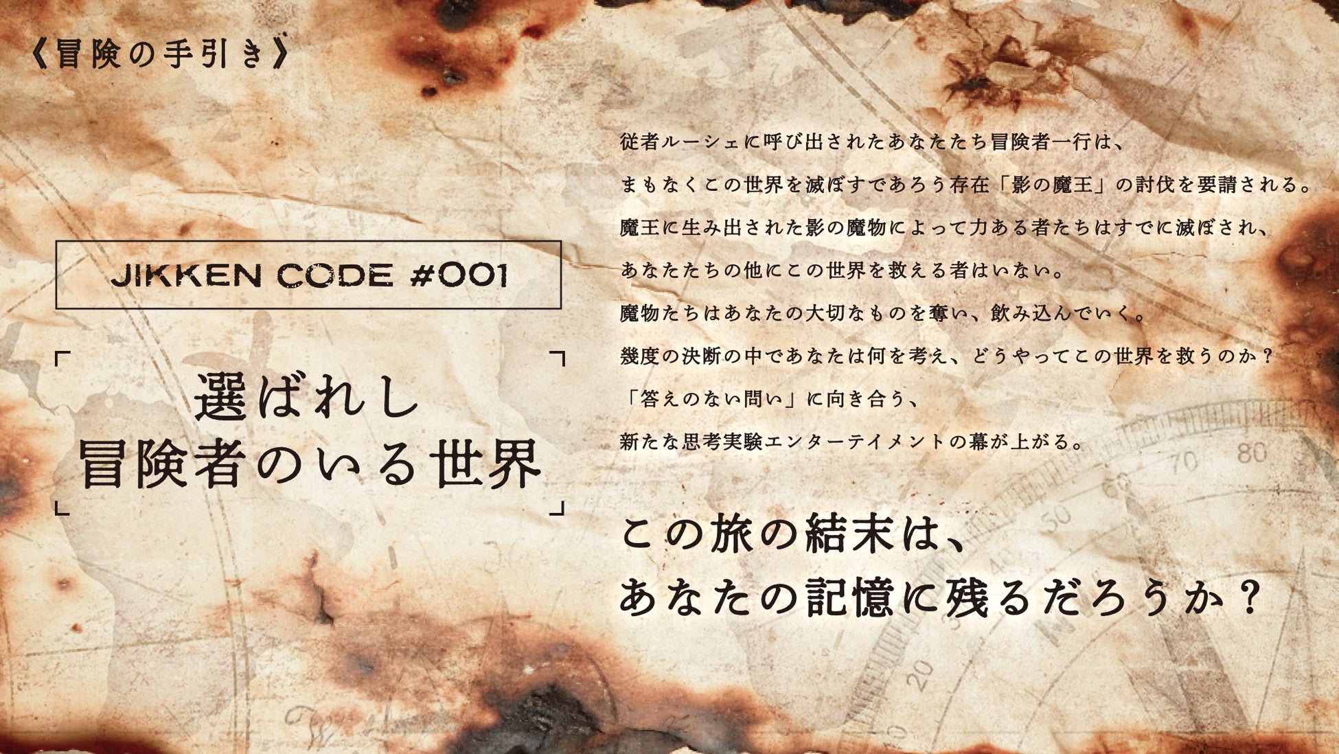 タイトル:思考実験展 JIKKEN CODE#001ー選ばれし冒険者のいる世界ー