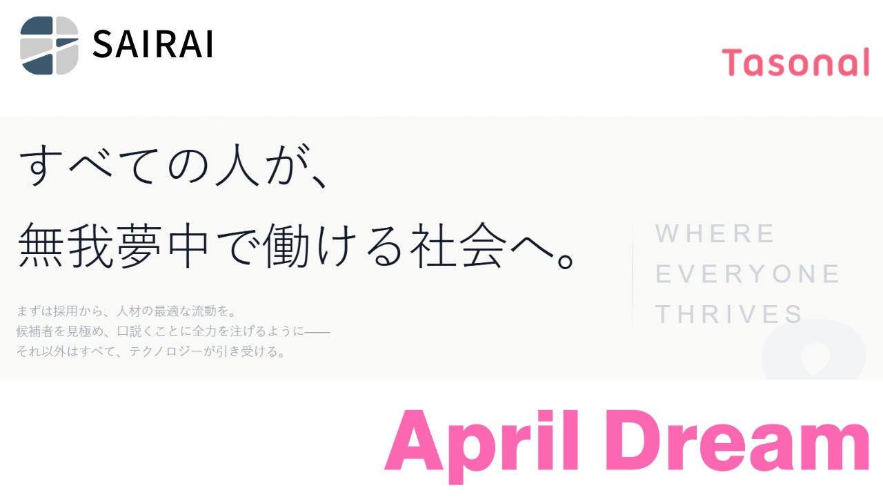 当社は、4月1日を夢を発信する日にしようとするApril Dreamに賛同しています。このプレスリリースは「株式会社SAIRAI」の夢です。