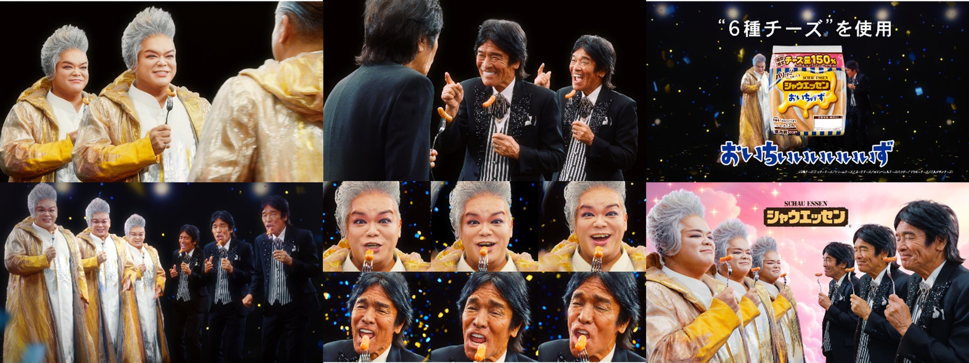 岡本知高さんと国民的ソウルシンガー・松崎しげるさんが「おいちぃぃぃぃぃぃず♪」の濃厚デュエットを披露。なんとお2人がデュエットするのはこれが初めてとなります。『おいちぃず』のパッケージ登場から始まり、岡本さんがアイコンタクトを送ったその先には…まさかの松崎さんが登場。視線を交わした瞬間、とてつもないインパクトで歌唱がスタート。カメラに向かってぐっと距離を詰めるように迫りながら、2人の表情も声量も“限界突破”へと加速。チーズ量150%※の『おいちぃぃぃぃぃぃず』のように伸ばして歌い上げ、息をのむほどの伸びやかなロングトーンと、情熱的なシャウトの連続、そして濃厚なハーモニーで、濃厚チーズの高揚感をまっすぐ体感させます。『おいちぃぃぃぃぃぃず』のパッケージが大きく映し出されCMが終了すると思いきや…「※まだ続きます」のテロップと共に歌唱も延長戦に突入。最後は歌い終わりの余韻の中で、『おいちぃぃぃぃぃぃず』をパリッ!!と食べる2人の幸せな表情で締めくくられます。音響にもこだわり、イヤフォンを使用すると2人の声が左右からそれぞれ聞こえる演出で、まるでその場でデュエットを聞いているような臨場感に包まれます。ぜひイヤフォンでこだわりの立体音響もお楽しみください。