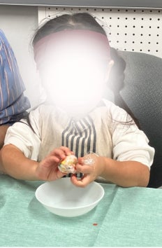 チュモッパは今や日本でも人気の料理となりました。韓国語で“チュモ”は拳、“パ”はごはんという意味です。好きな具材とごはんを混ぜる簡単かつ美味しいメニューです。今回の具材は(いんげん・ソーセージ・コーン・たくあん・鮭フレーク・韓国のり・かにかま)子どもが自分で具材を選んでごはんと混ぜて、ラップで包みます。自分で混ぜて包むのを楽しんでくれました!自分で包んだチュモッパは大きさもそれぞれ違うけどどれも最高のチュモッパでした!