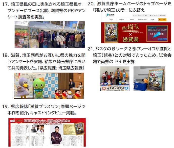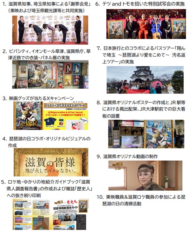 また、映画の公開とあわせて、関係所属(滋賀ロケーションオフィス、県広報課、ここ滋賀、ボートレースびわこ)が合計24件にも及ぶ本作タイアップ企画を徹底実施。本県における「埼玉」ブームの到来に貢献しました。