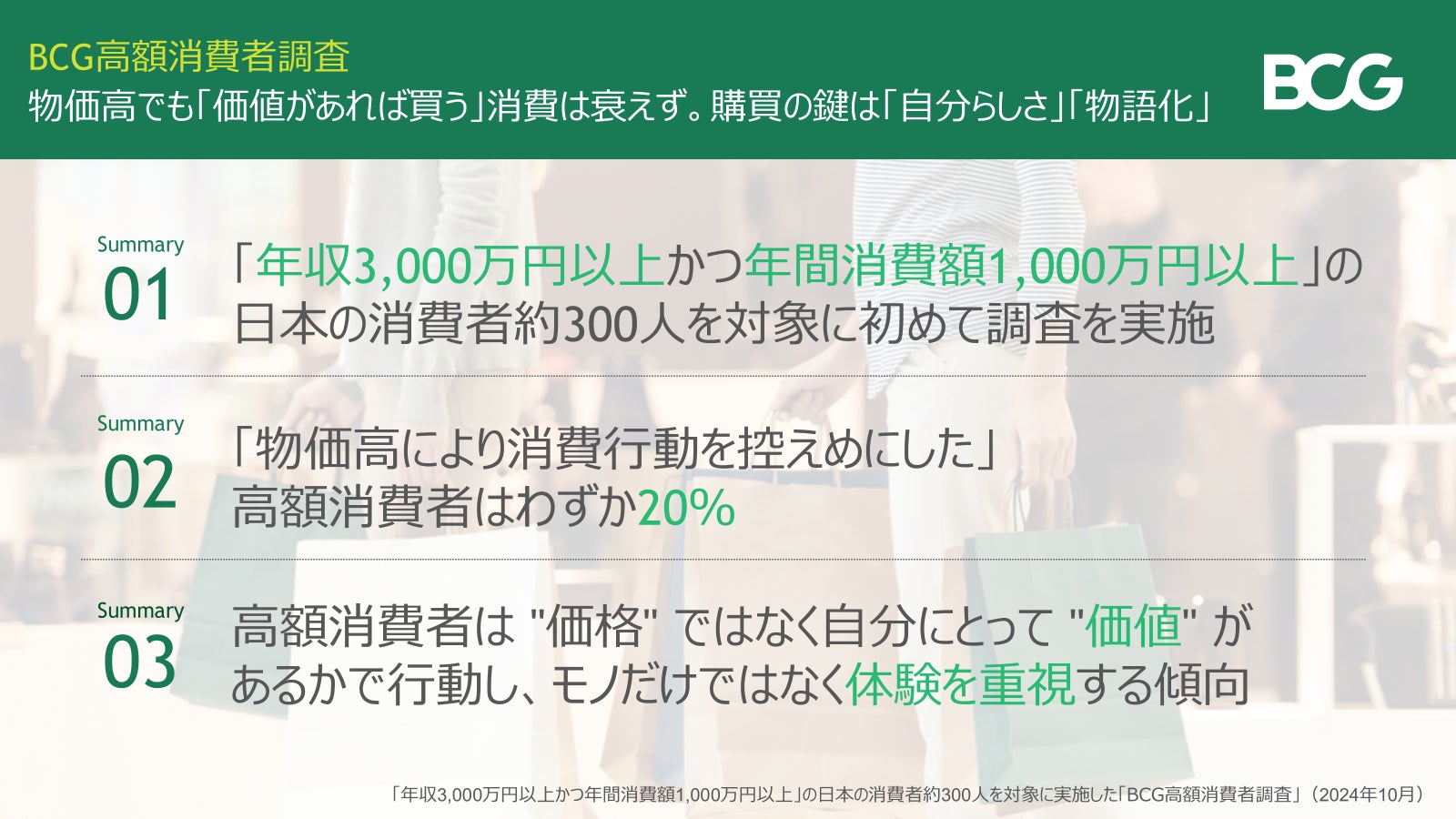 「BCG高額消費者調査――データで読み解く インフレ時代に自分らしさを買う高額消費者」