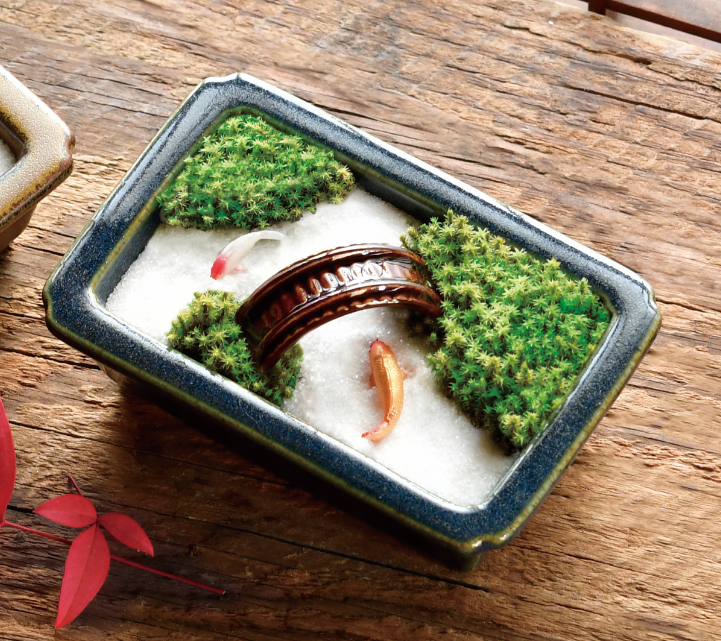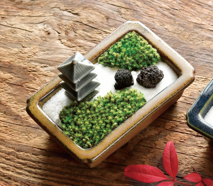 そんな枯山水を、自宅で手軽に楽しめるようにしたのが「禅庭」。苔や白砂を組み合わせ、手のひらサイズの庭園を自由にデザインしながら、日常に和の癒しを取り入れることができます。