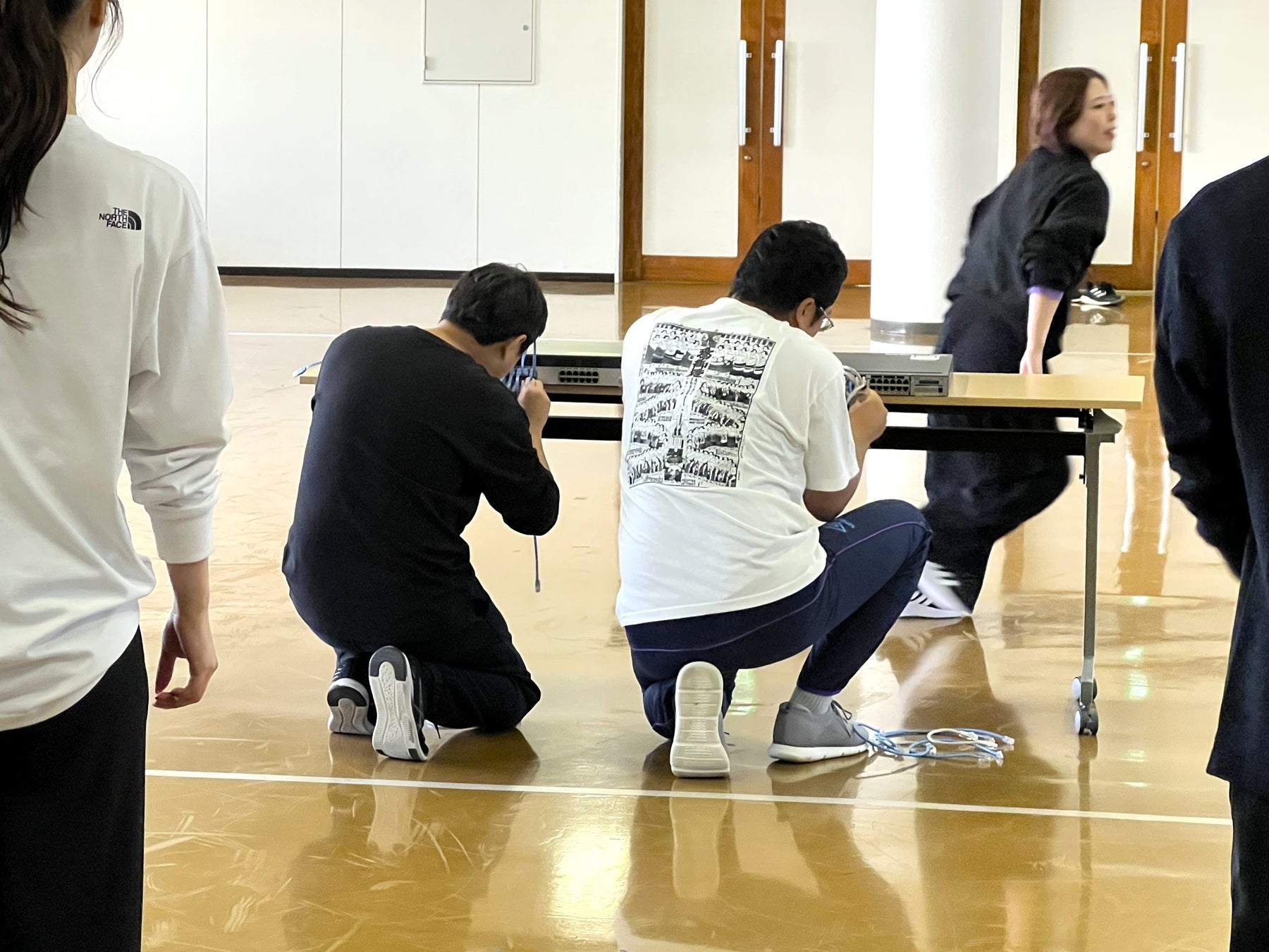 ネットワーク機器に素早くケーブルを抜き差しする競技。