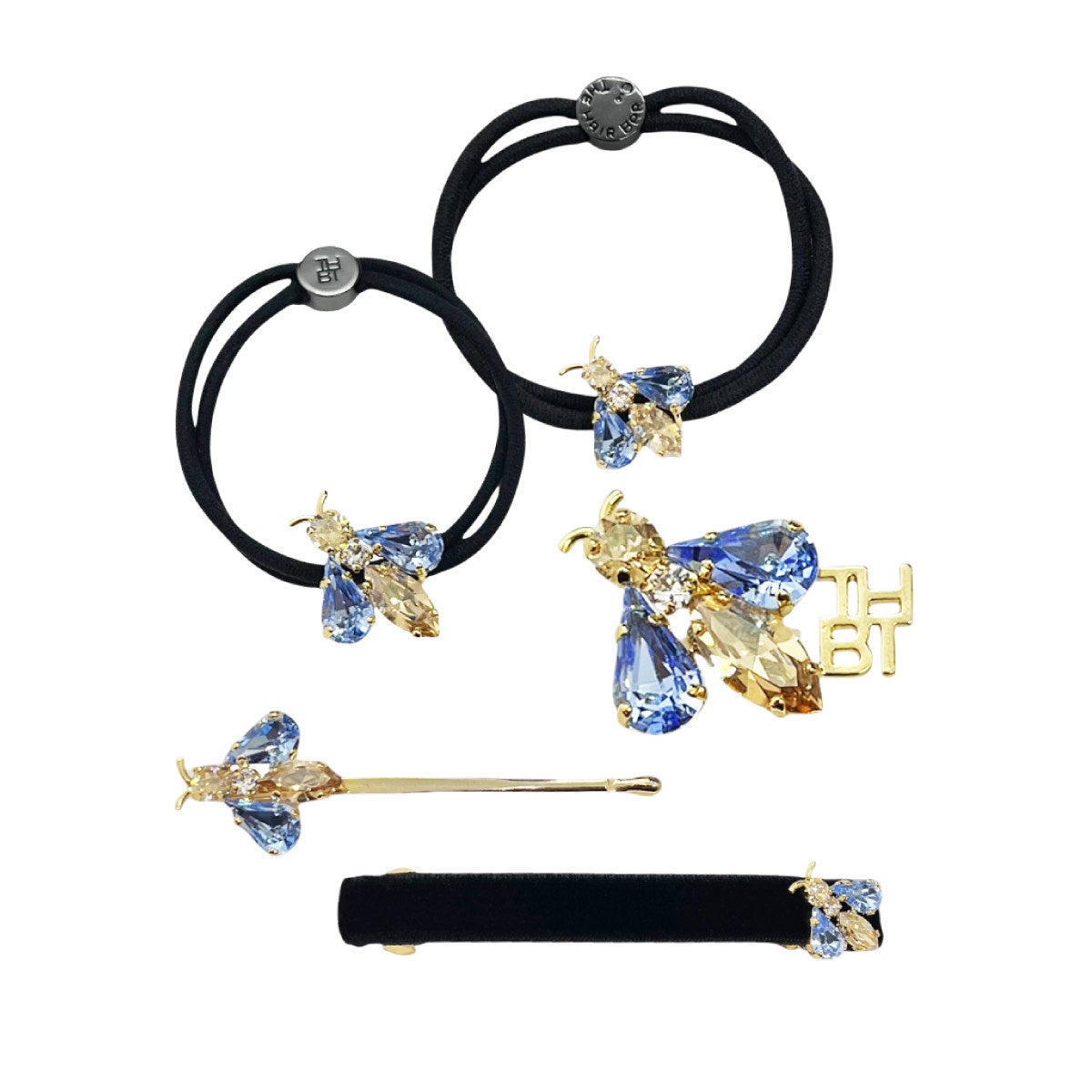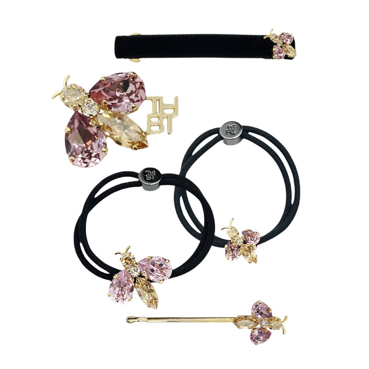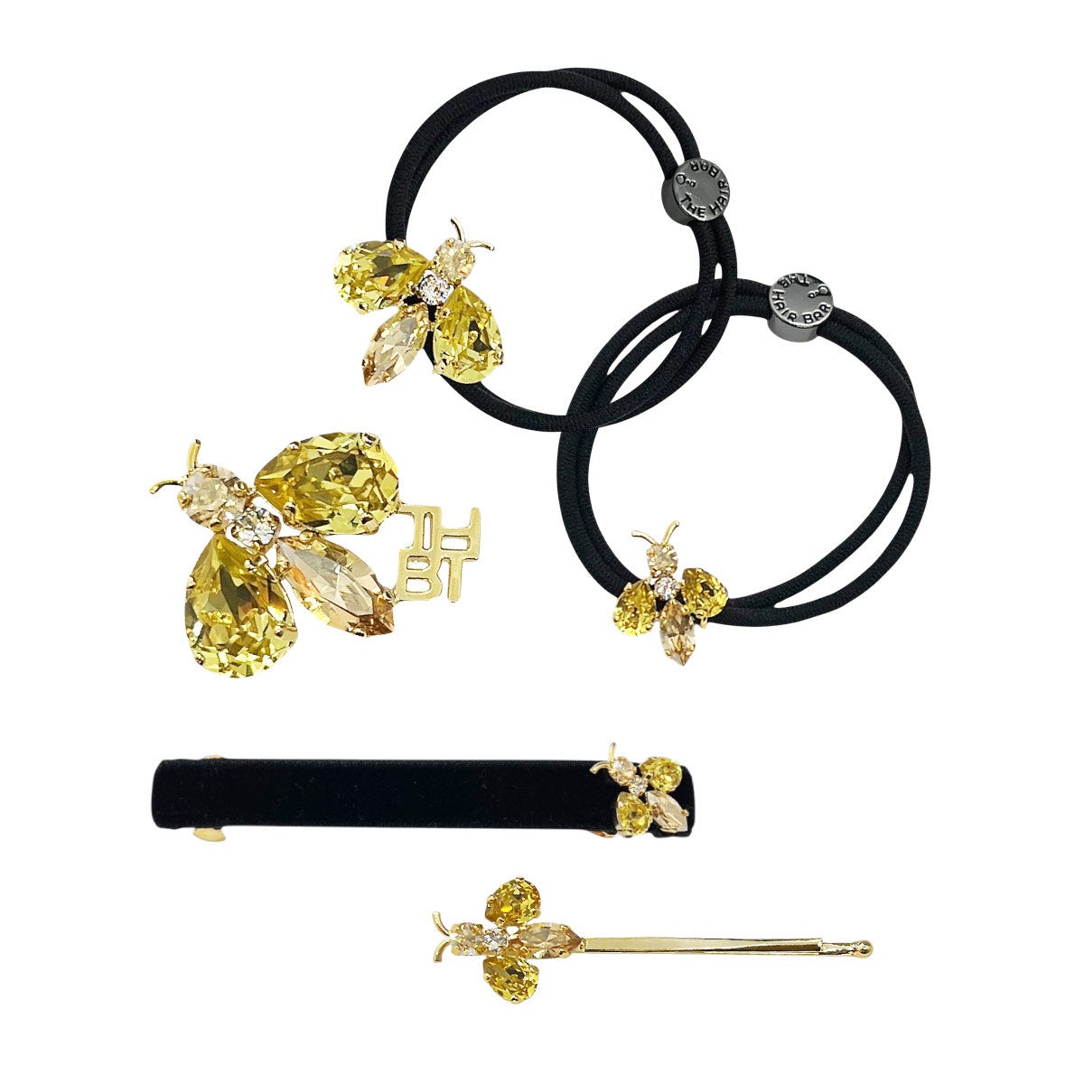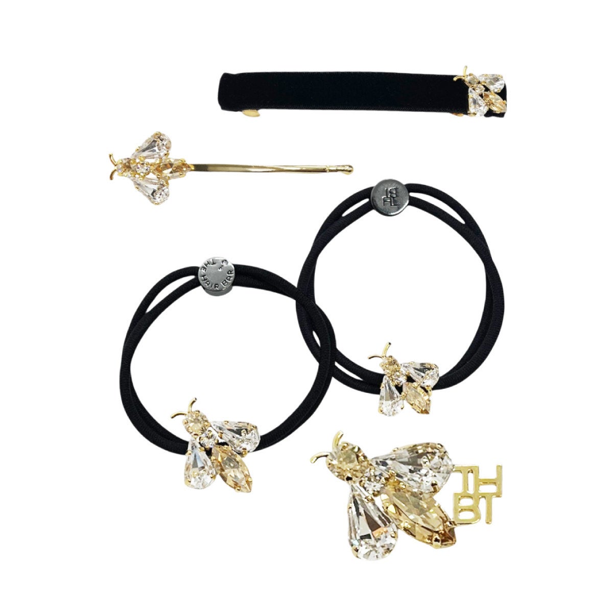 スモール、ミディアムサイズともに、丁寧な手仕事で爪留めされたビジューのきらめきが印象的です。ポニーテールにはほどよい存在感がスタイルのアクセントに。サイズ違いで重ね付けをすることで、蜂の躍動感を演出するのもおすすめです。編み下ろしの先に結めばアーティな印象に。ヘアにはもちろん、ブレスレットとしてもお楽しみいただけます。