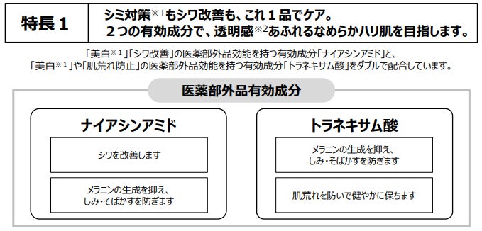 ●有効成分として「ナイアシンアミド」と「トラネキサム酸」を配合。