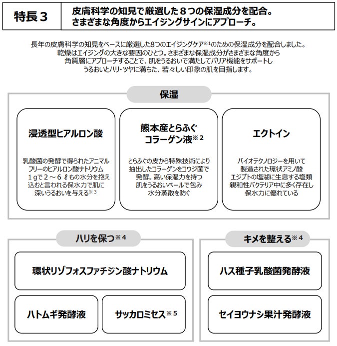 ※3 年齢に応じた化粧品によるお手入れ ※4 うるおいによる ※5 ヒアルロン酸ナトリウム(保湿成分)