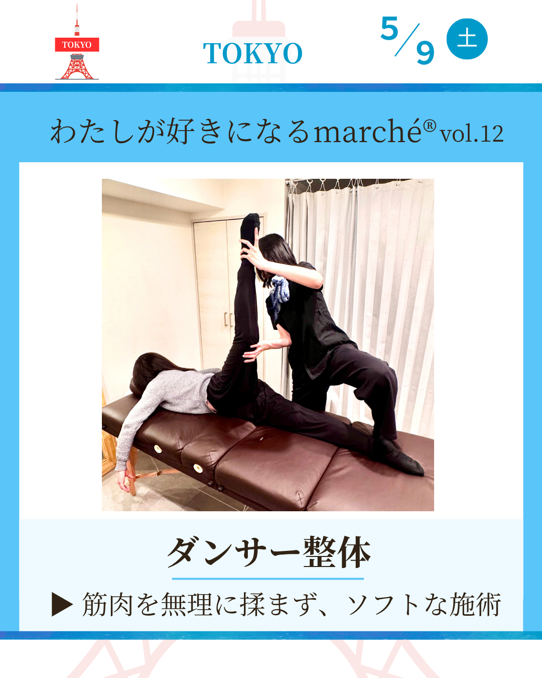 ダンサーの身体特性を踏まえた、パフォーマンス向上とケガ予防を目的とした整体です。