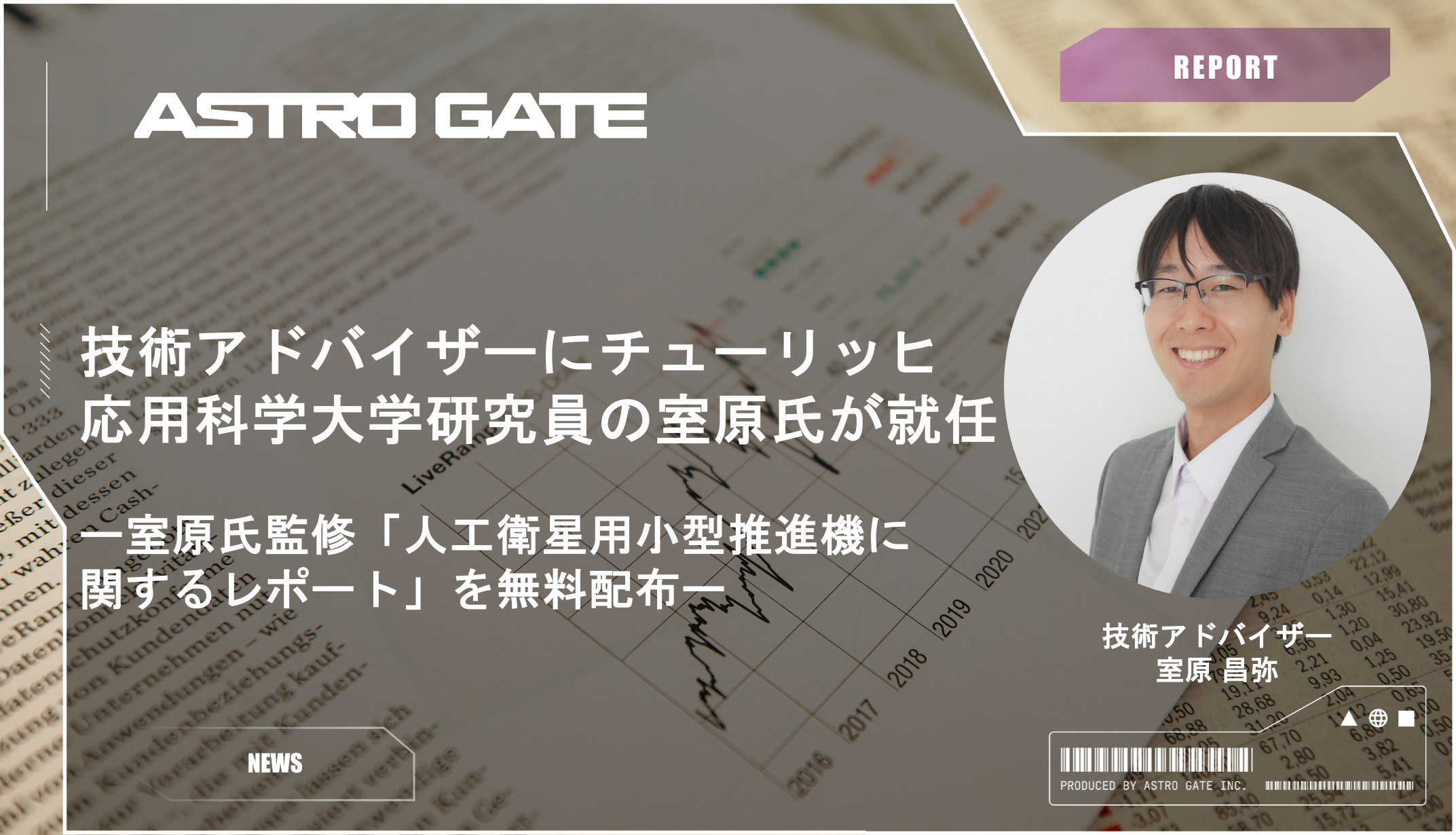 ーASTRO GATE株式会社 技術アドバイザーにチューリッヒ応用科学大学研究員の室原氏が就任ー
